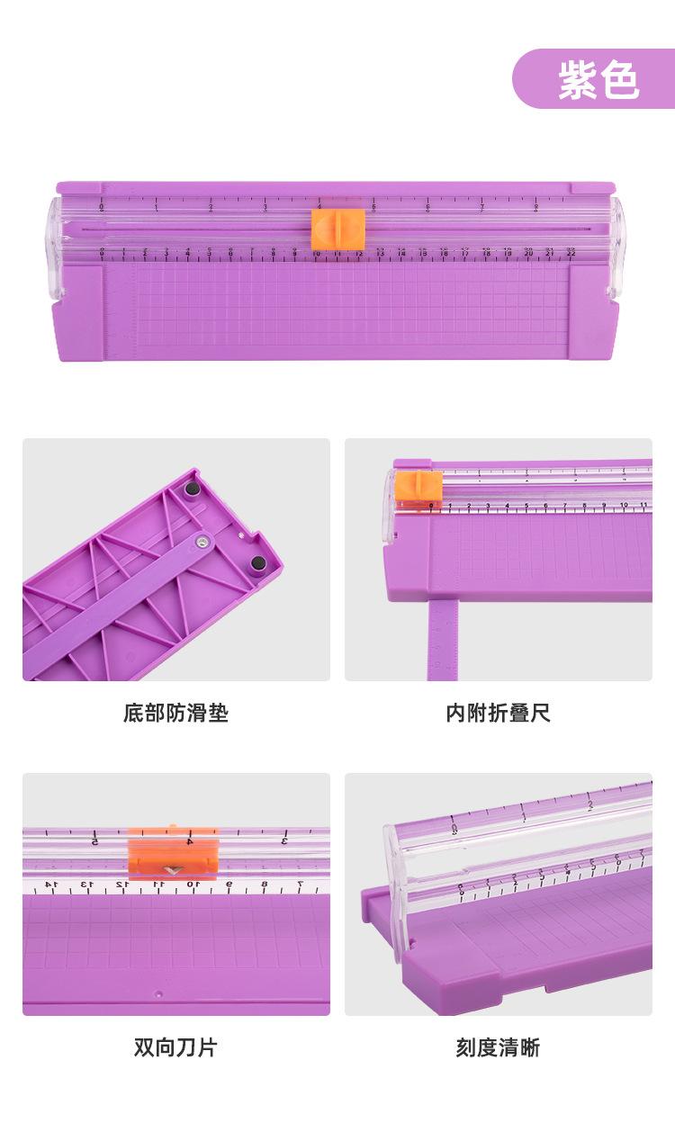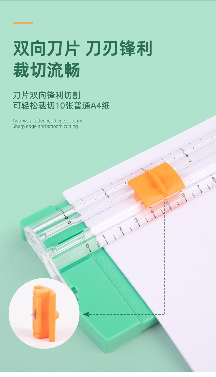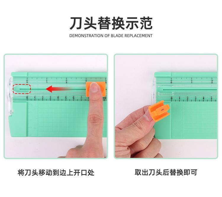 √El cortador de papel de base de plástico mini pequeño utiliza plástico de ingeniería ABS de alta calidad, la cuchilla está hecha de acero SK2, duradera, este modelo de cortadorgratisProporcionar color, cartón, embalaje y otra personalizaciónpor encargo。