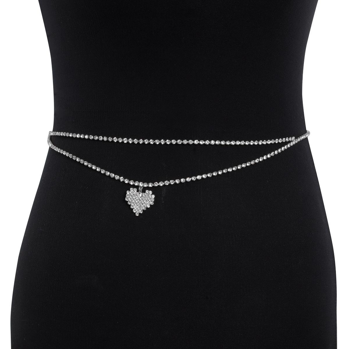 Joyería de gran venta transfronteriza, moda simple, decoración de cintura con diamantes de amor, estilo europeo y americano, cadena corporal sexy que combina con todo, cadena de cintura para mujer