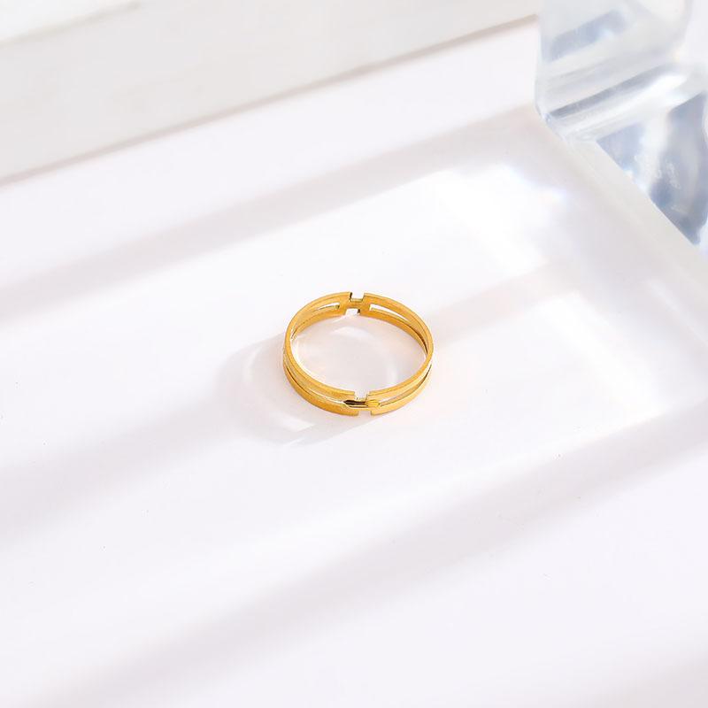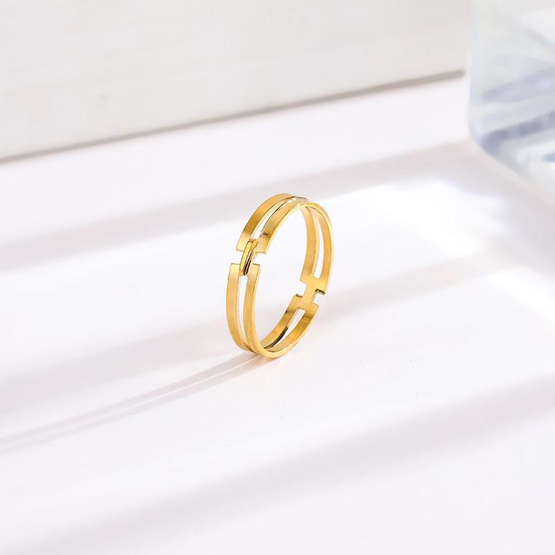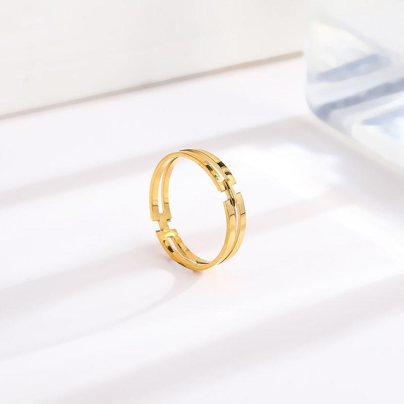 Anillo Geométrico Simple H Acero Titanio para Mujer Nicho Versátil Oro 18k Dedo Índice Celebridad de Internet Mismo Estilo Lujo Ligero Versátil Joyería de Moda