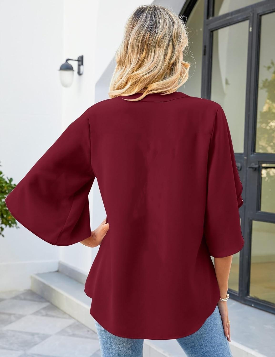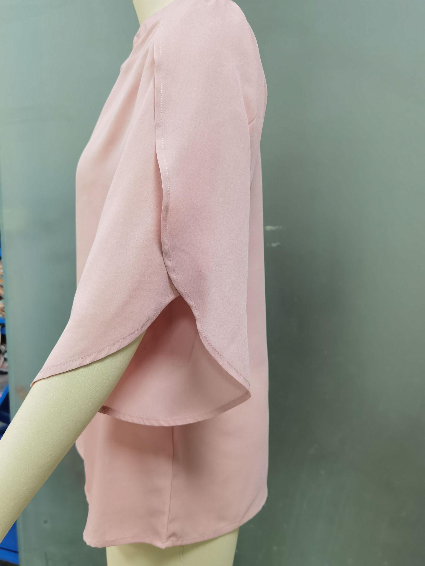 Blusa de gasa holgada con cuello en V de color liso para mujer europea y americana de Amazon, nueva moda de verano 2025