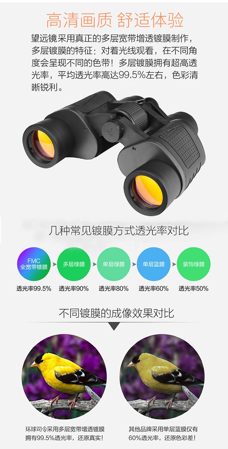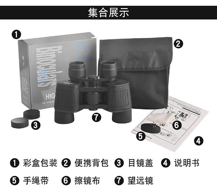 Binoculares 20x50 con visión nocturna estándar de alta definición con poca luz para exteriores, venta al por mayor