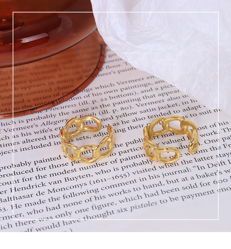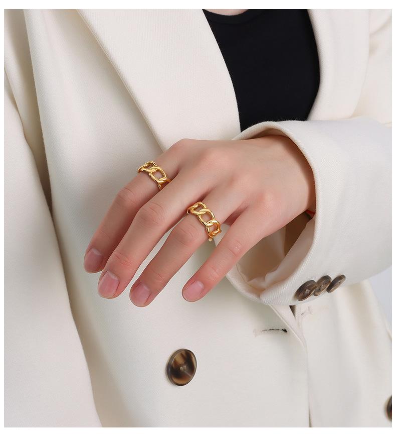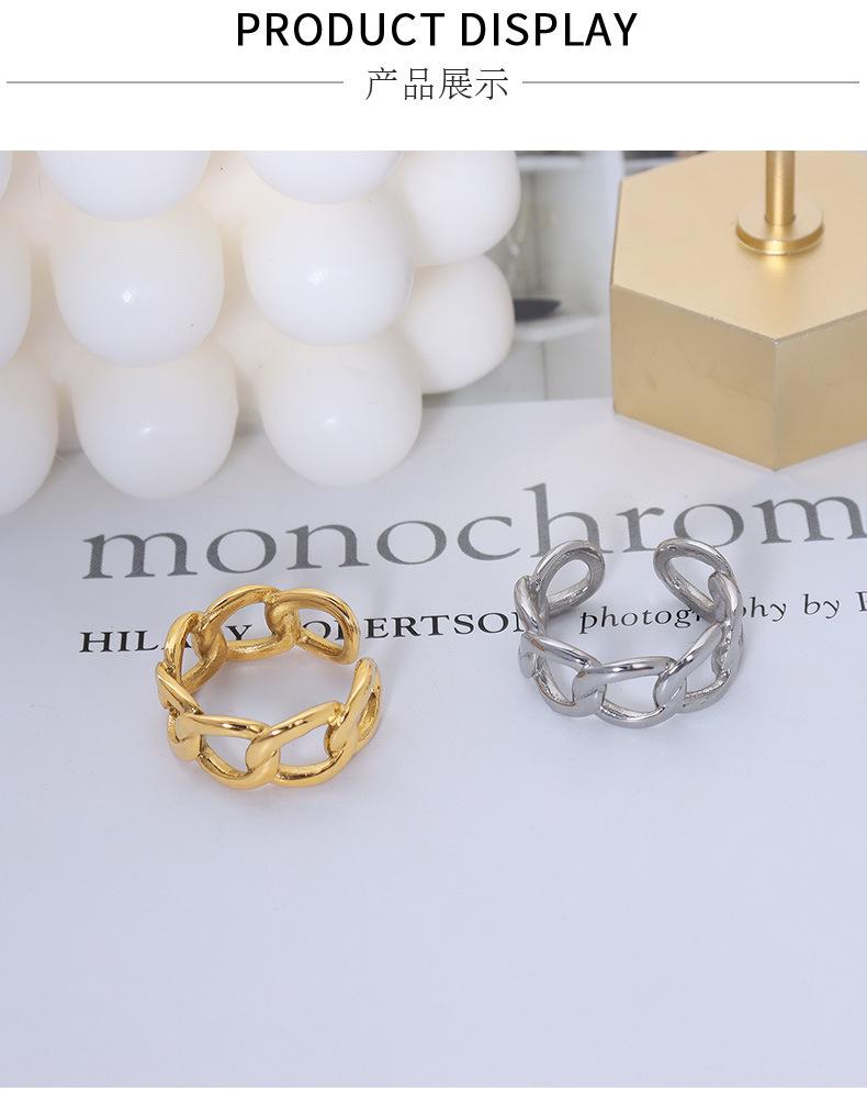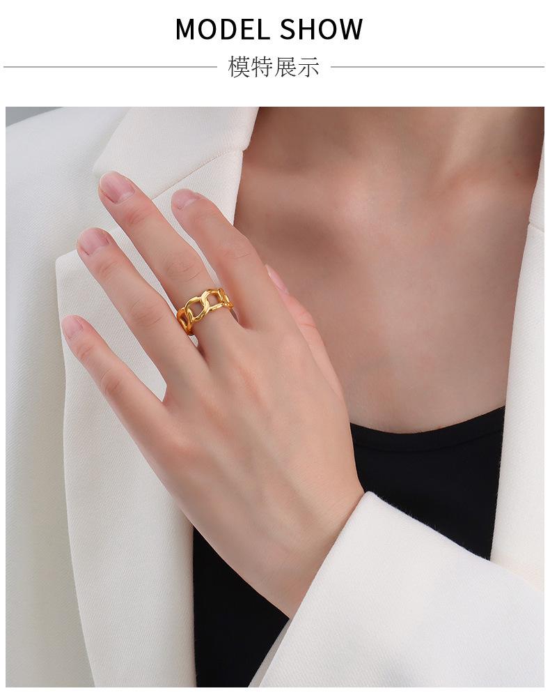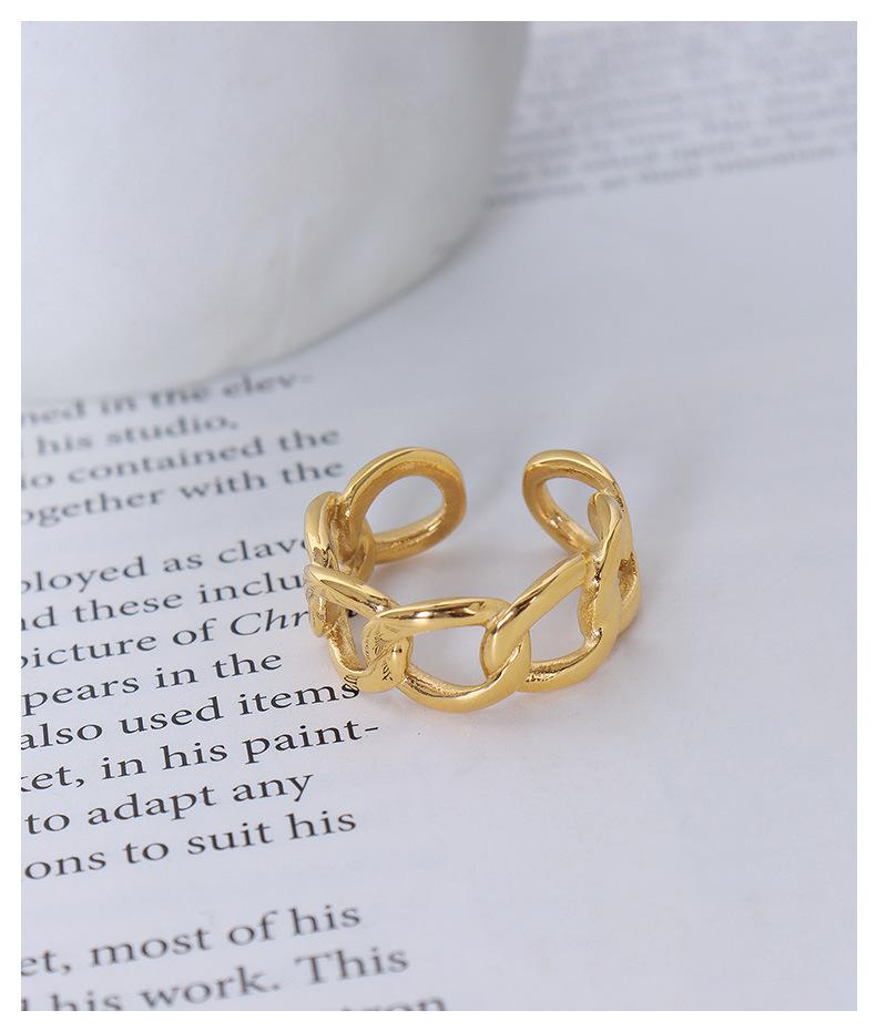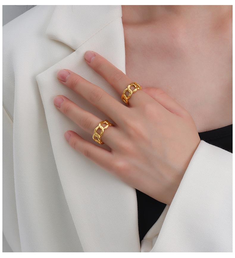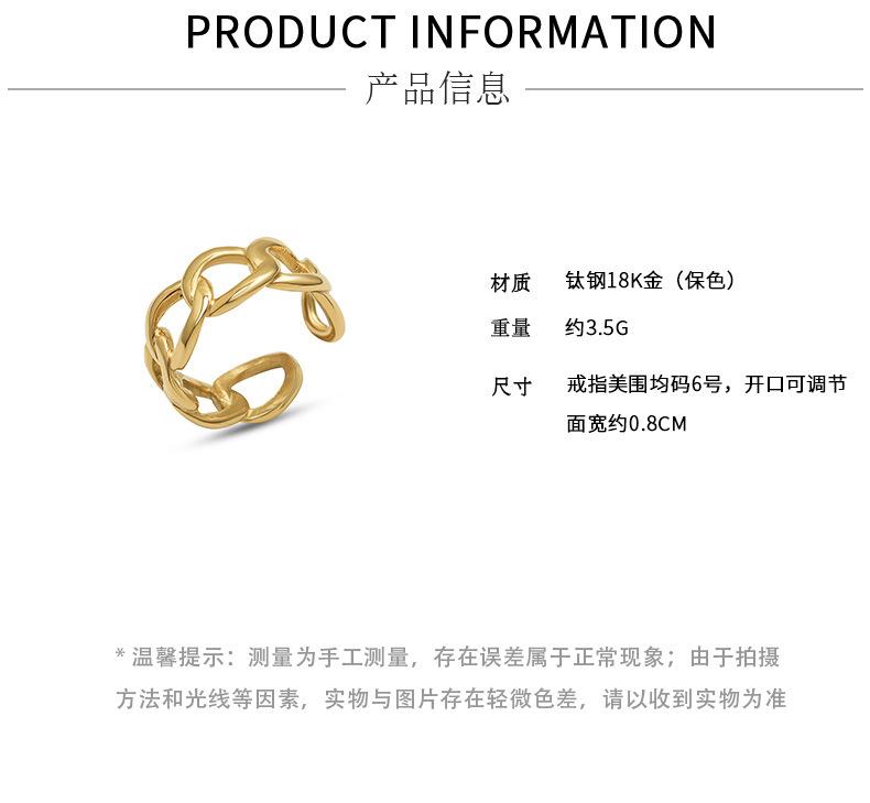 Anillo de Personalidad Exagerada Europea y Americana Acero de Titanio Chapado en Oro de 18k Cadena Hueca Anillo Abierto Ins Simple Anillo de Cola