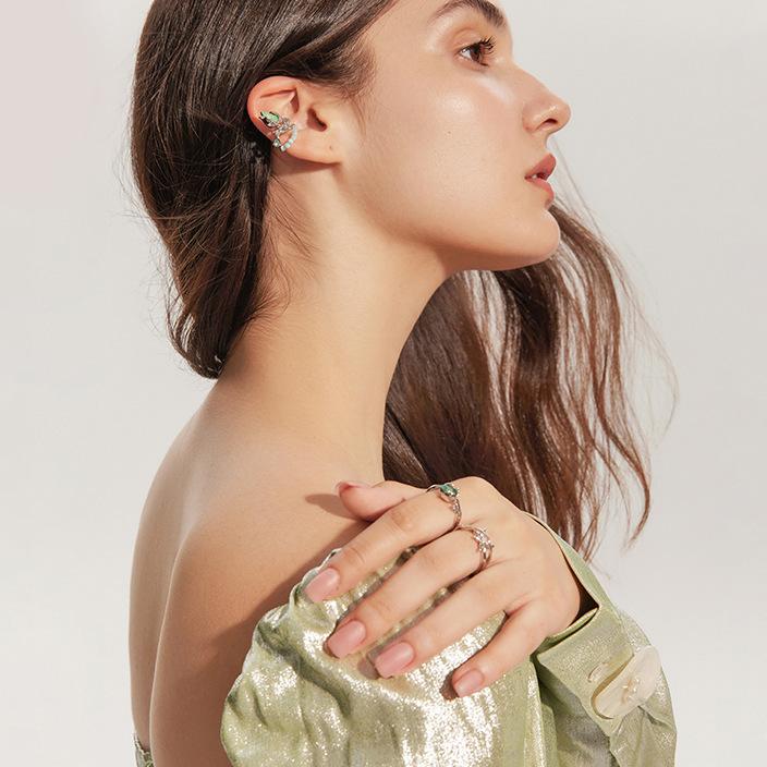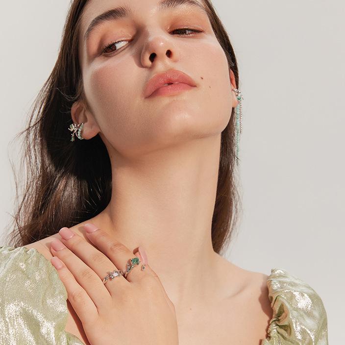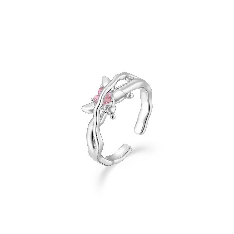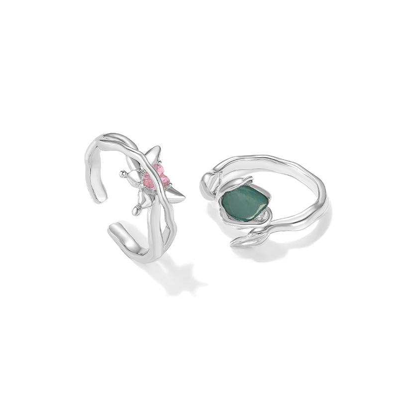 Lujoso Tulipán Lujo Ligero Sentido de Alta Gama Circonita Anillo Abierto Diseño Nicho para Mujer Anillo de Dedo Mariposa