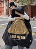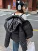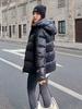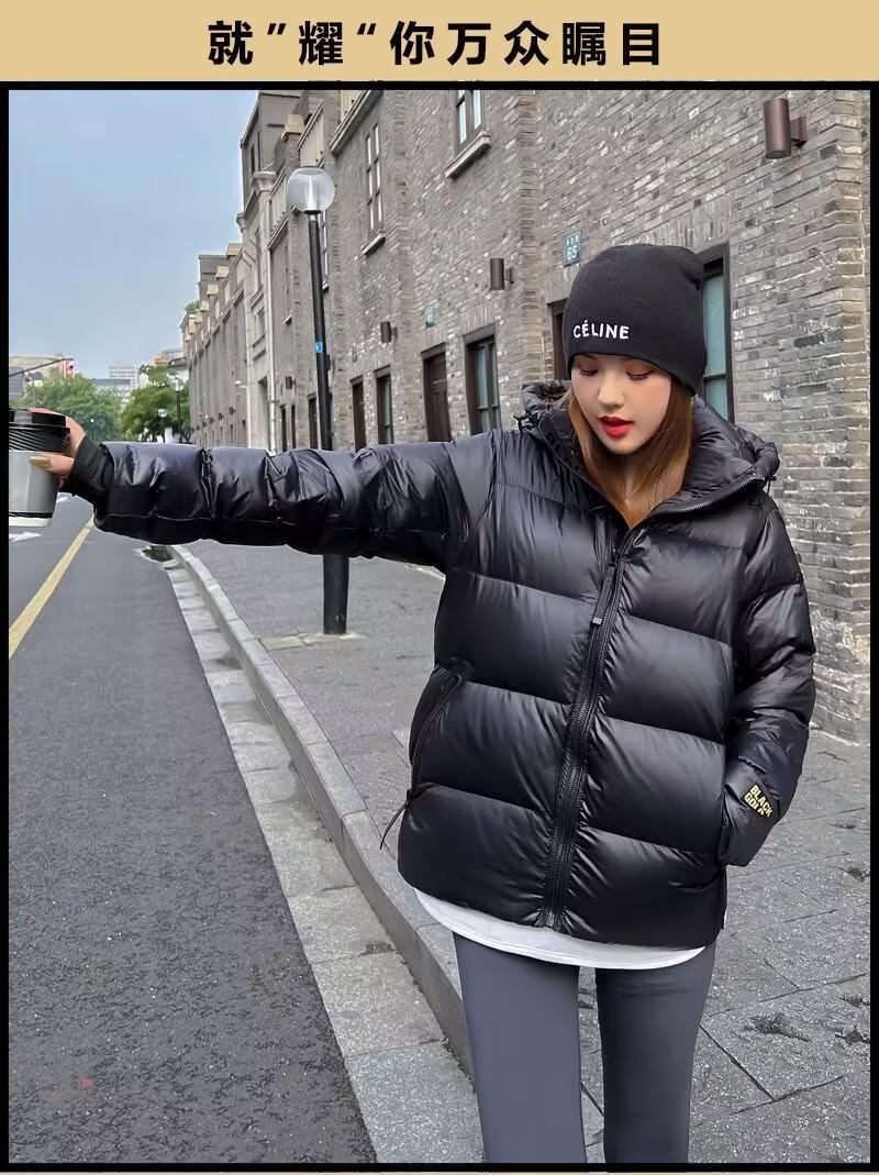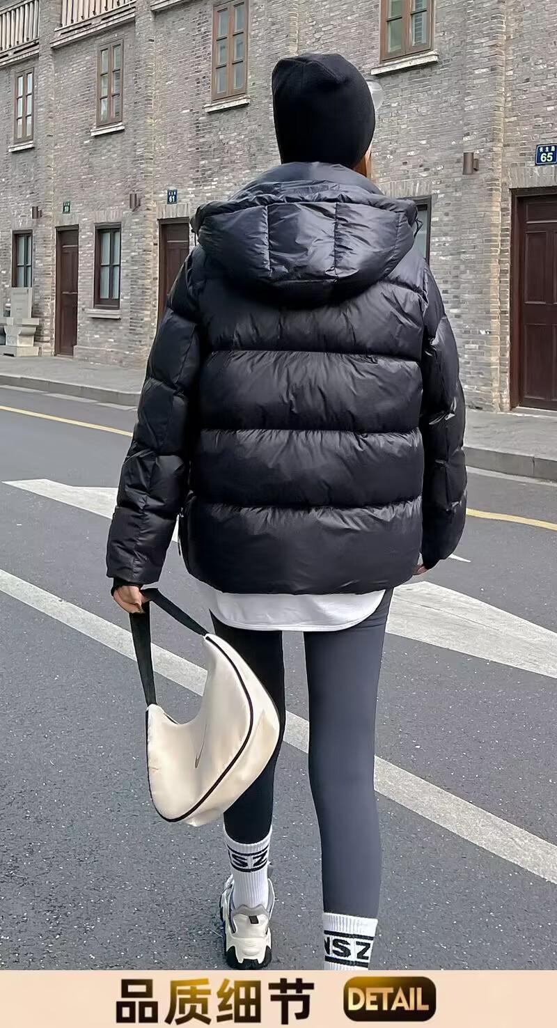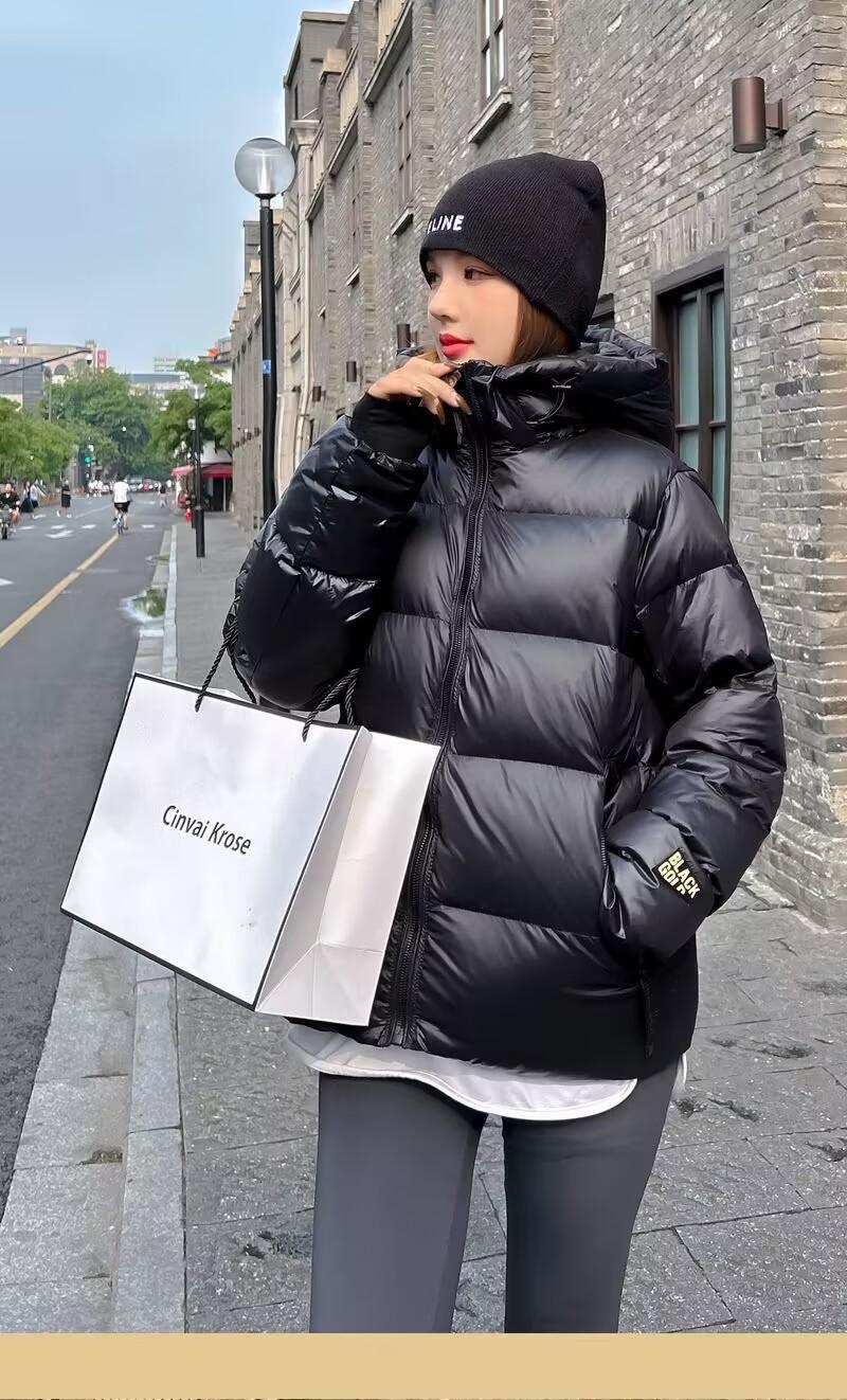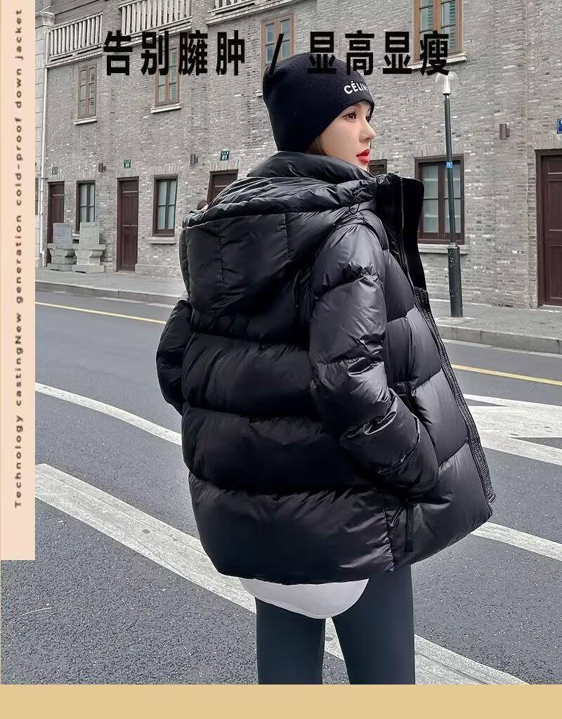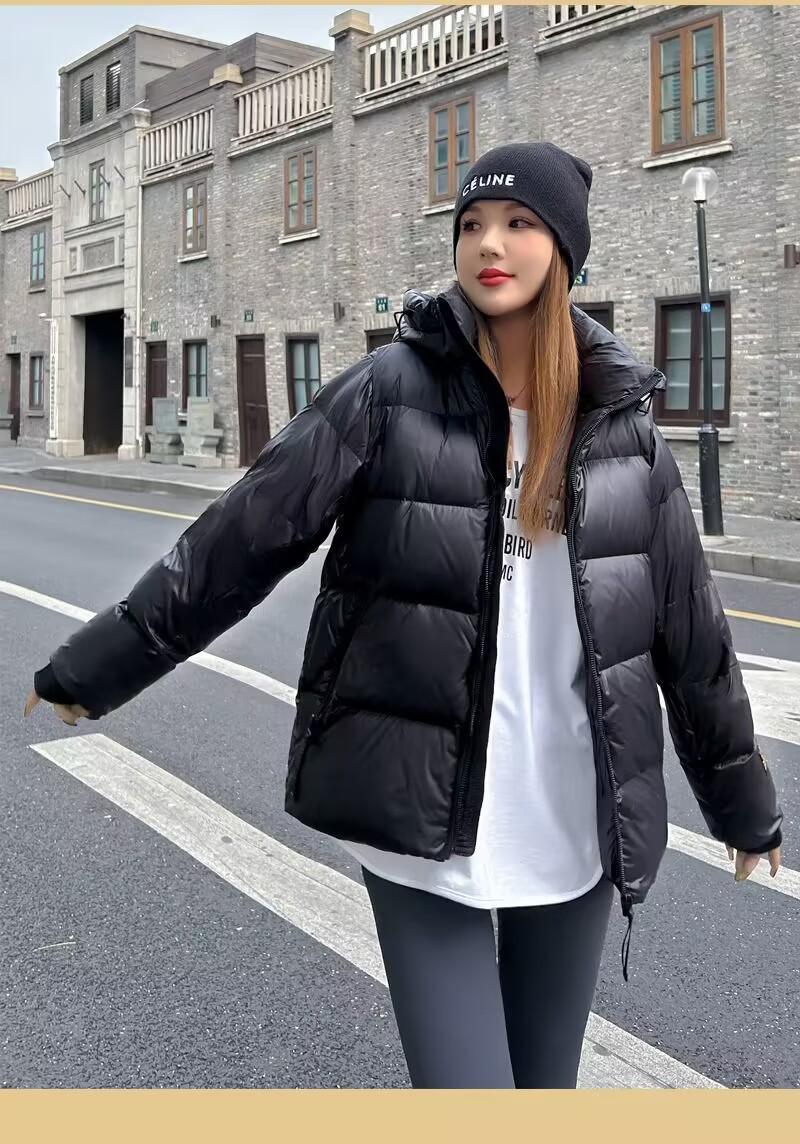Ropa de algodón acolchada de plumón con capucha dorada negra para mujer, invierno, ropa de novia, nueva, corta, de longitud media, para hombre y mujer, igual, holgada, gruesa, chamarra