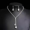 Hanfeng - Tendencia de moda, brillantes diamantes de imitación, gota de agua, accesorios nupciales de diamantes, collar, pendientes, traje N5647