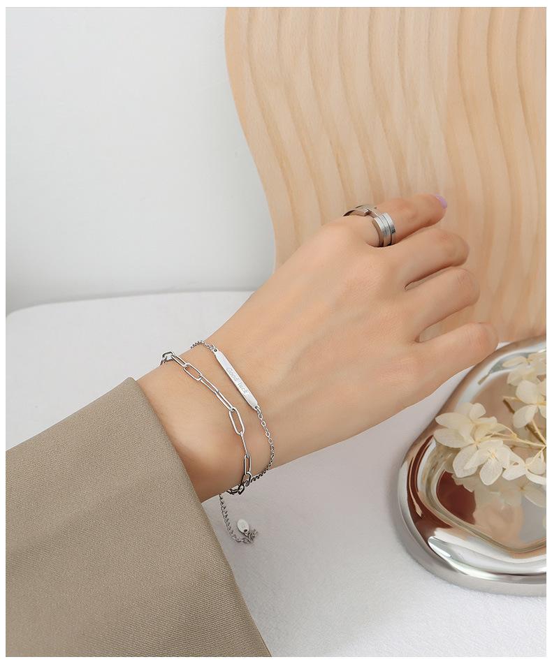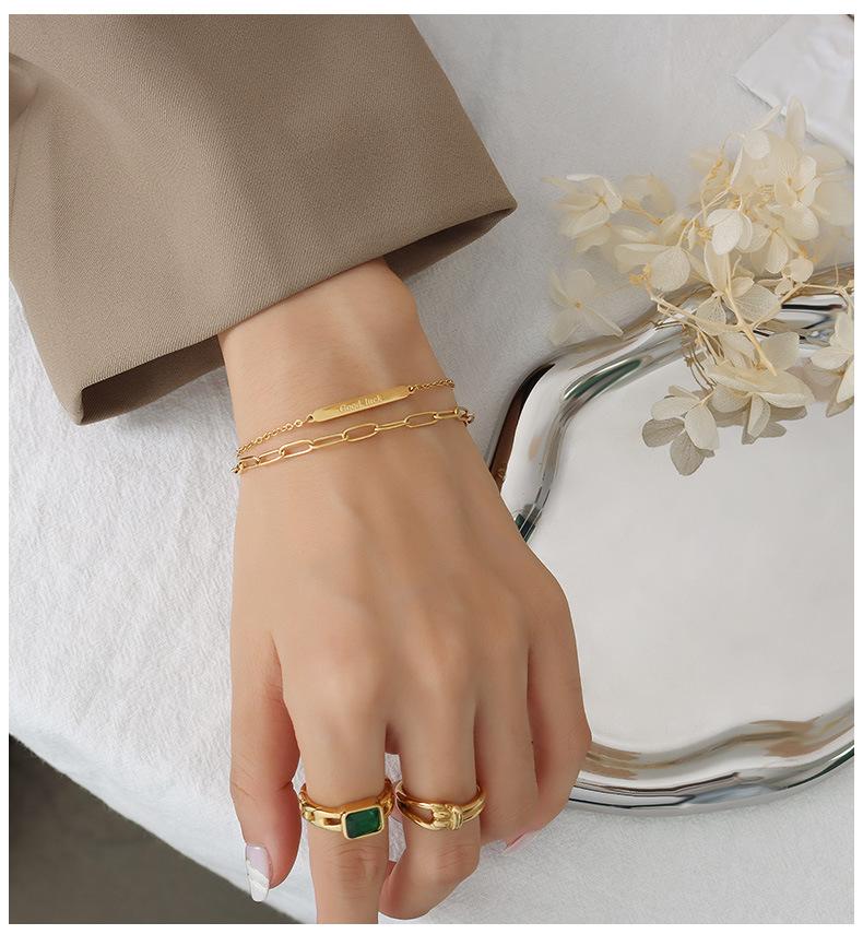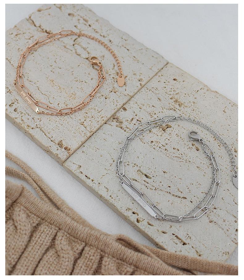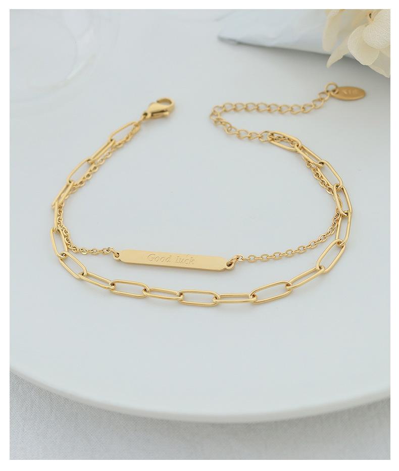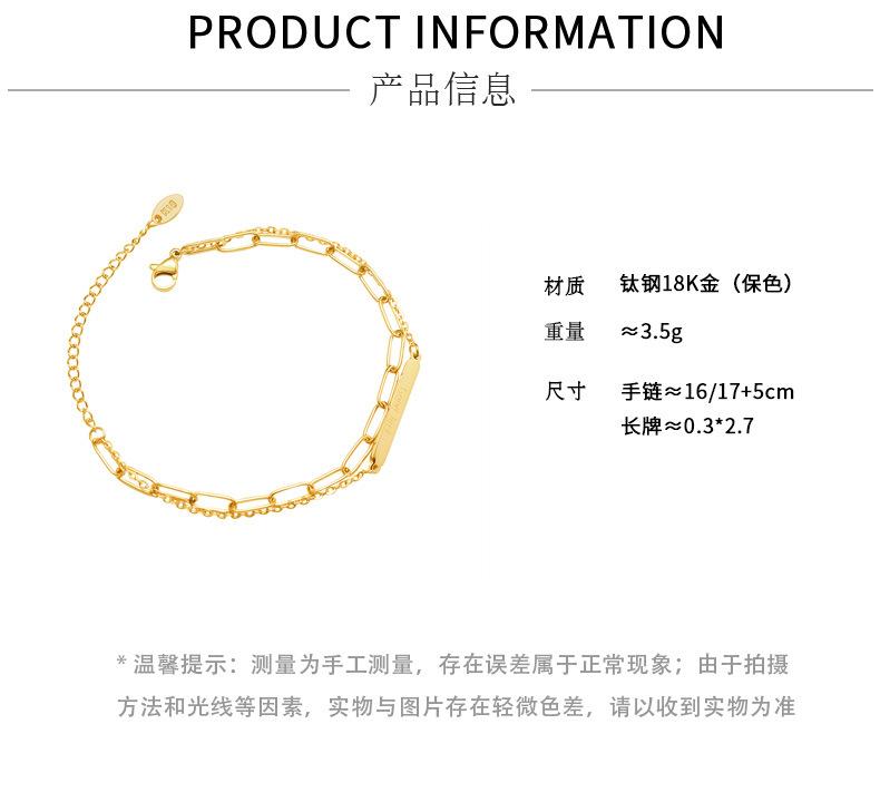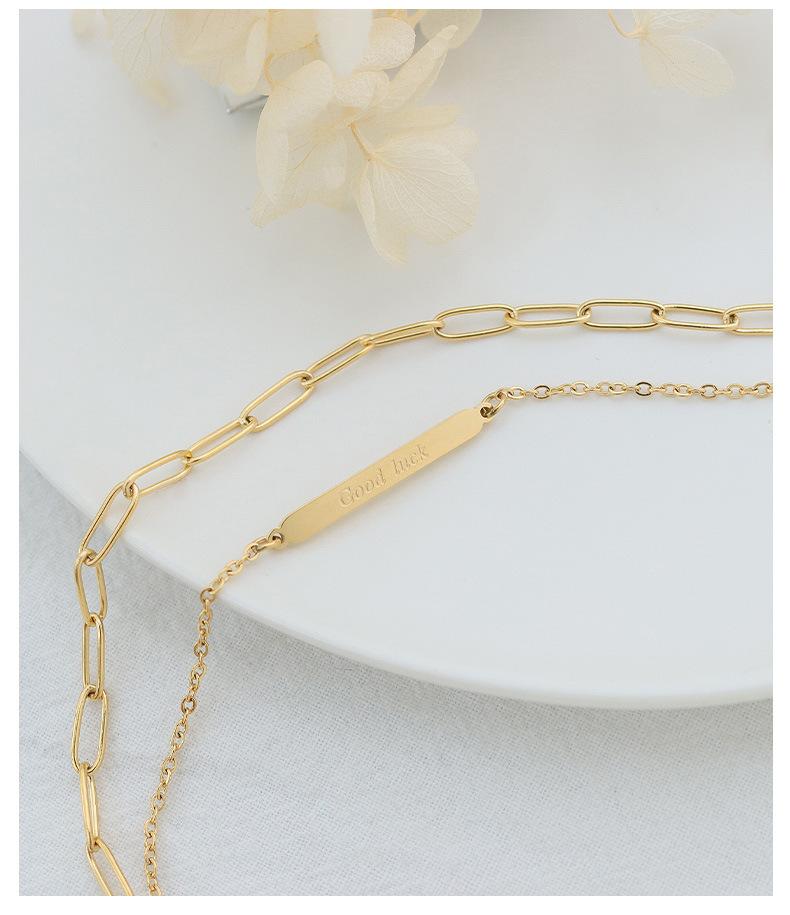 Gargantilla Francesa Grabado de Letra Inglesa Larga Pulsera de Doble Capa Sentido del Diseño Nicho Acero de Titanio 18K Pulsera E123