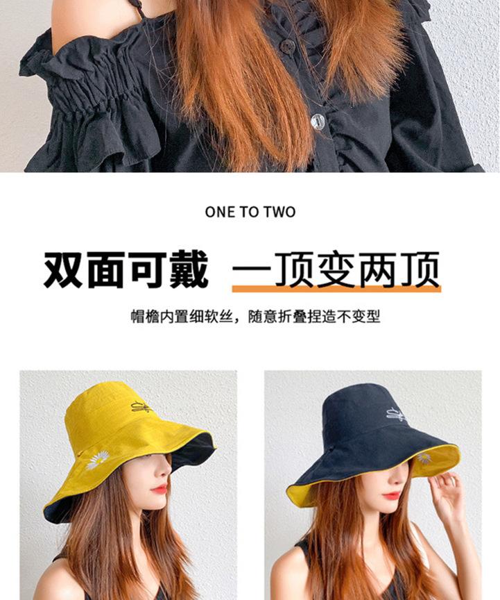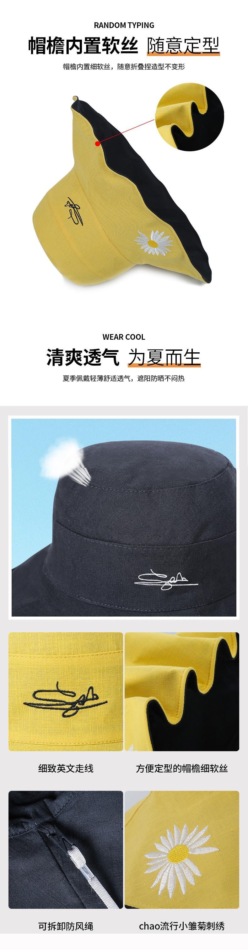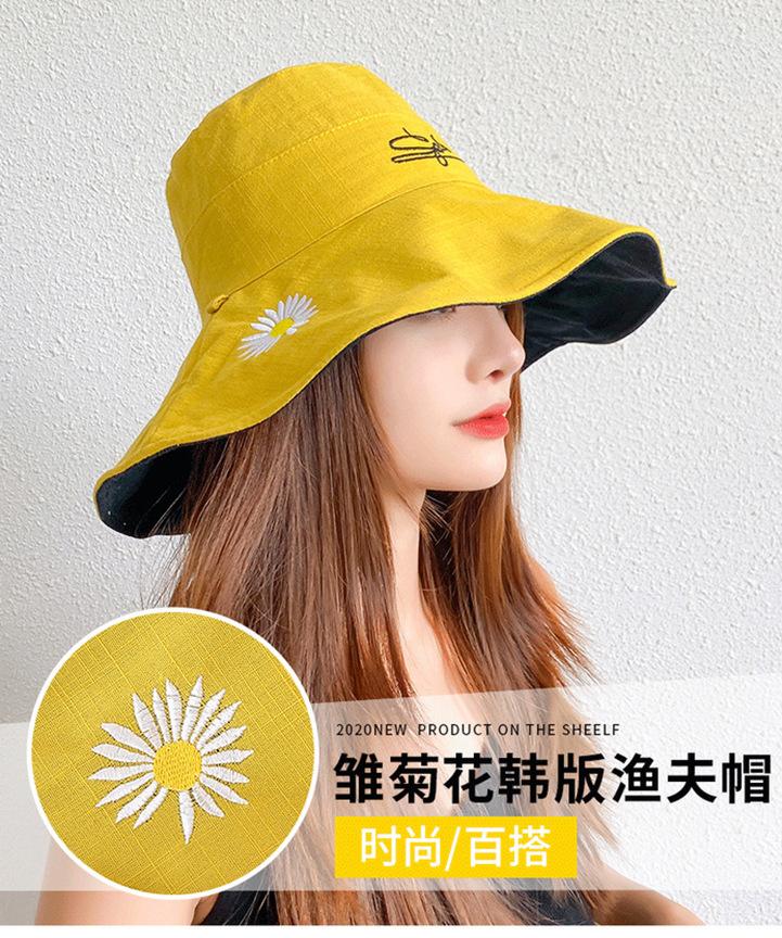 Sombrero de Verano para Mujer con Margaritas, Sombrero de Cubo de Ala Ancha Doble Cara Estilo Ins, Protección Solar, Sombrilla, Sombrero de Pescador, en Stock, Casual y Versátil