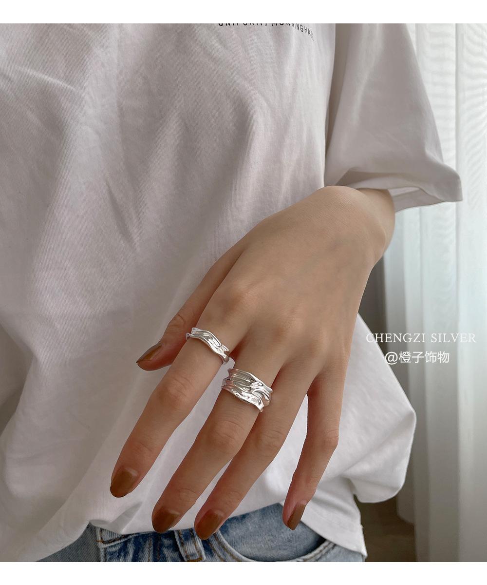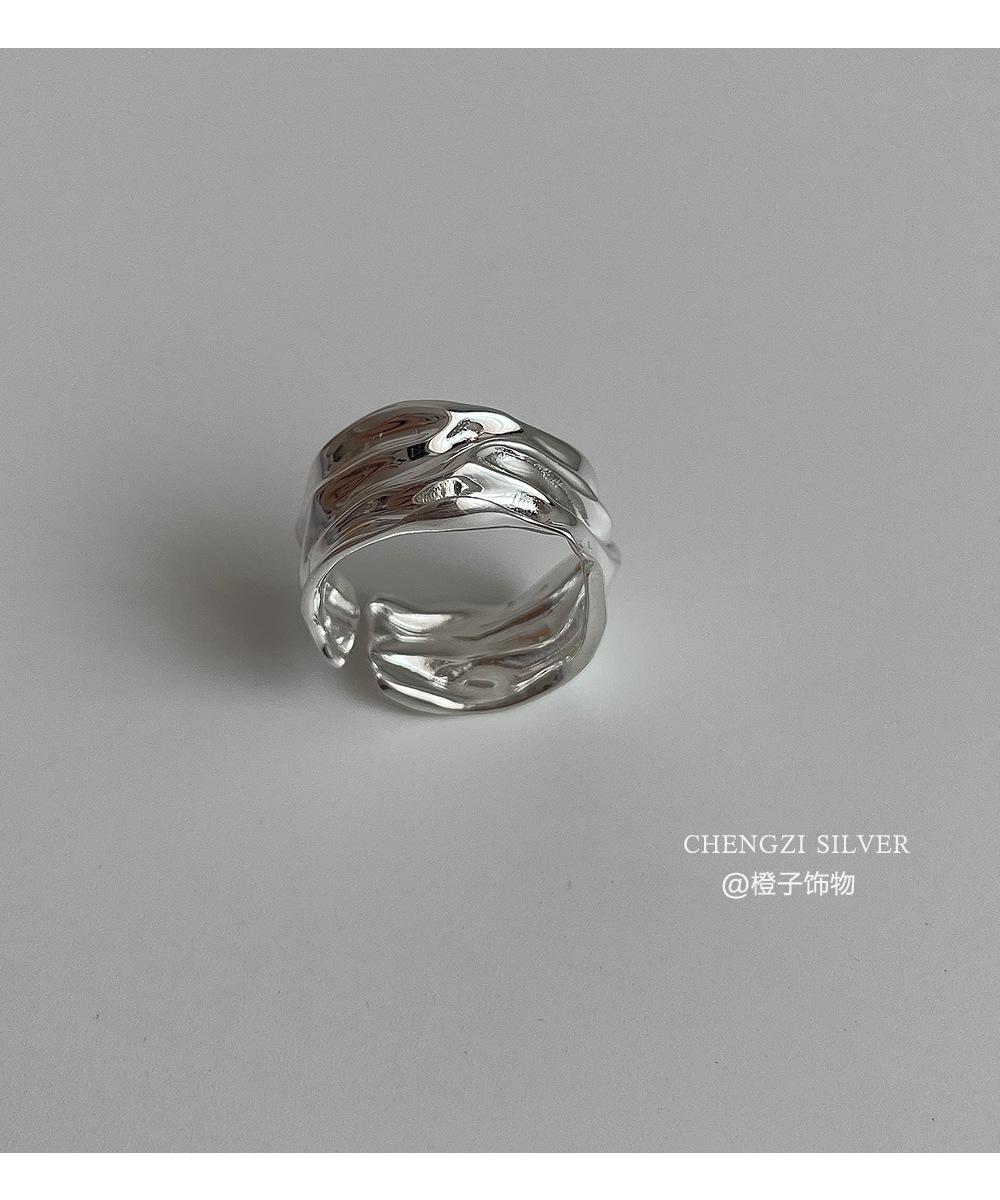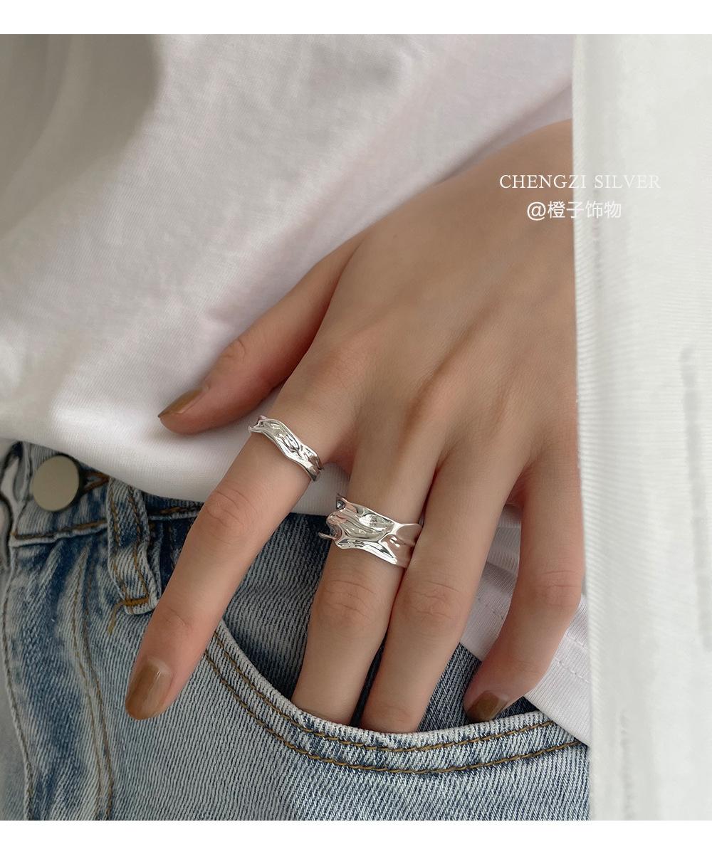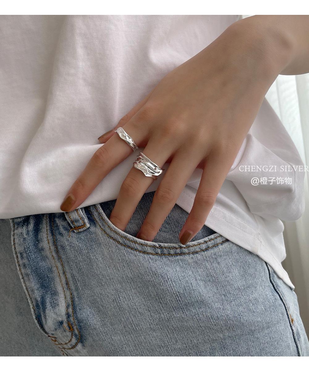 Anillo plisado geométrico para mujer, estilo retro, exagerado, de plata S925, abierto, estilo hip hop, punk, moderno.