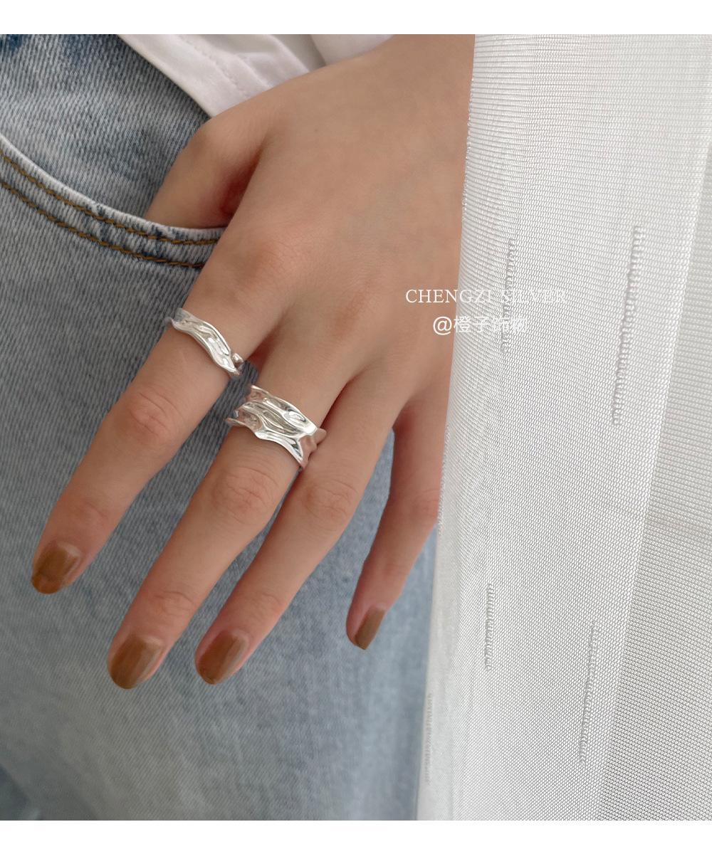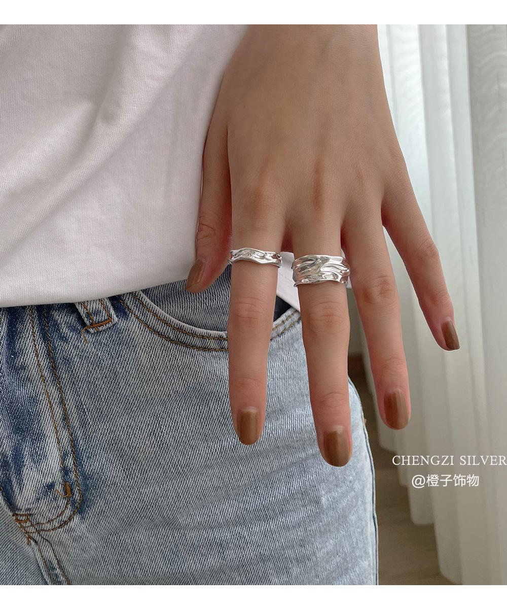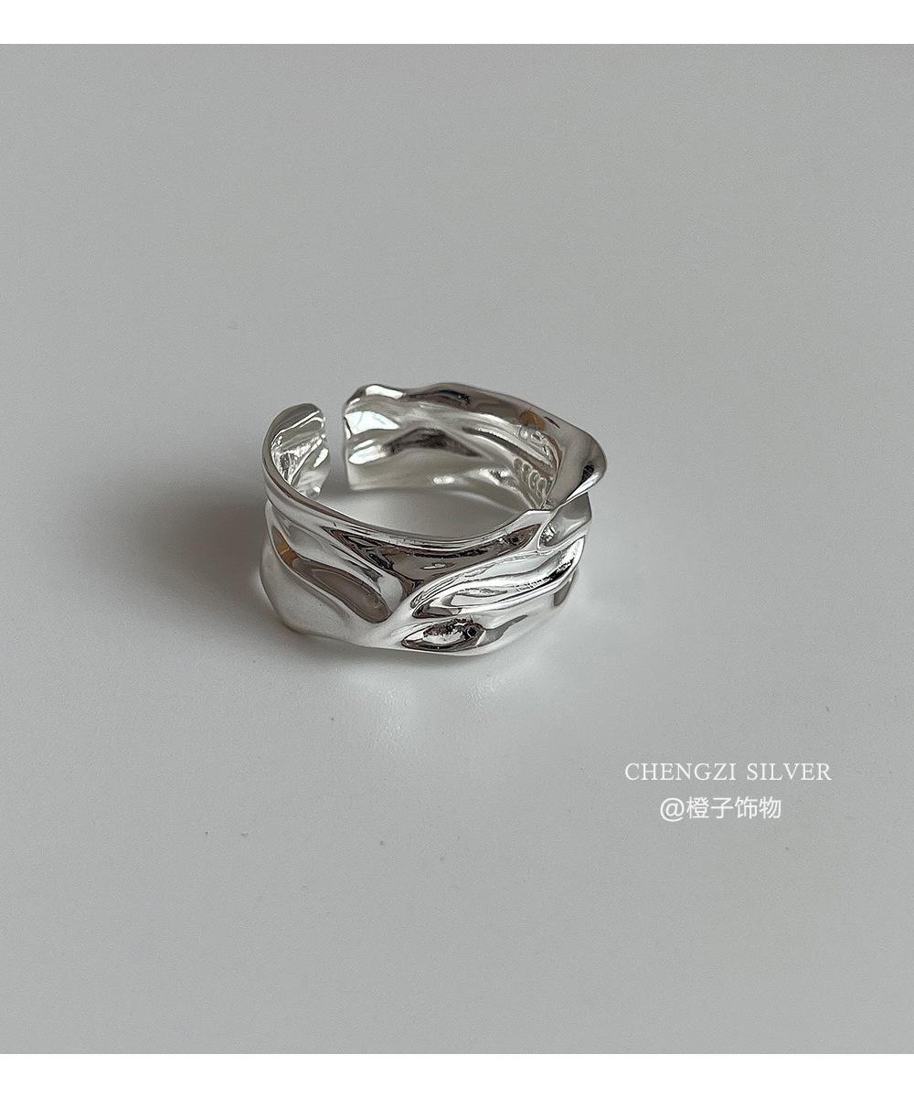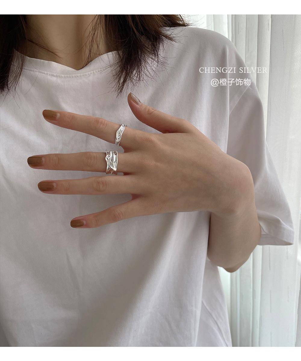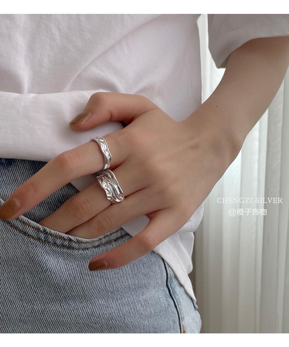 Anillo plisado geométrico para mujer, estilo retro, exagerado, de plata S925, abierto, estilo hip hop, punk, moderno.