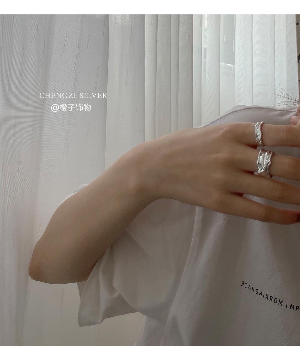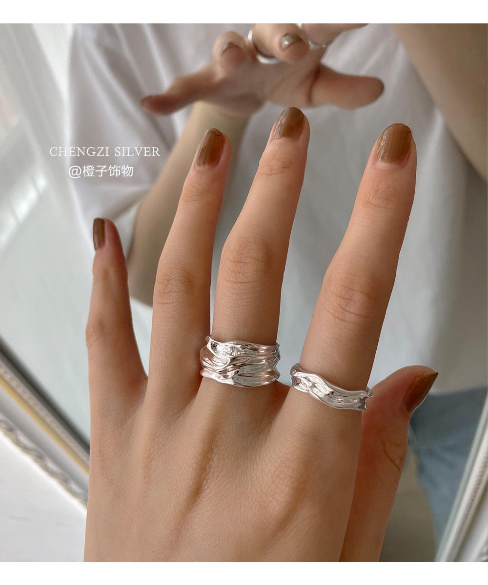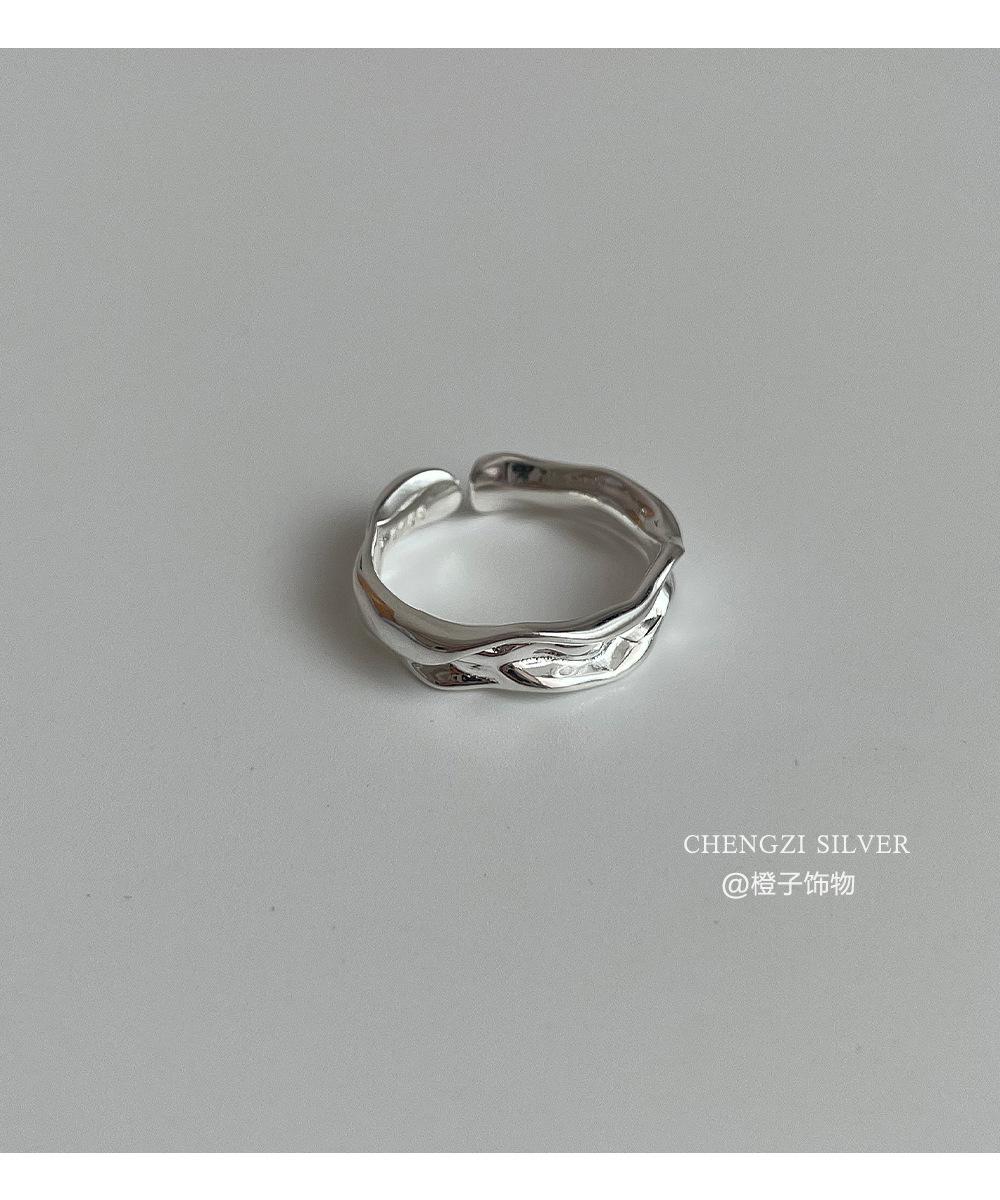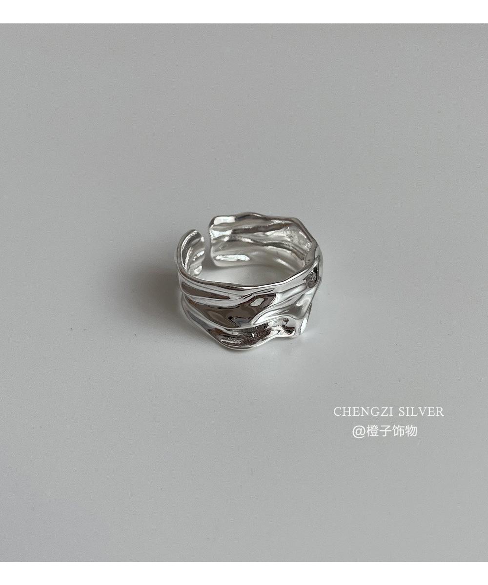 Anillo plisado geométrico para mujer, estilo retro, exagerado, de plata S925, abierto, estilo hip hop, punk, moderno.