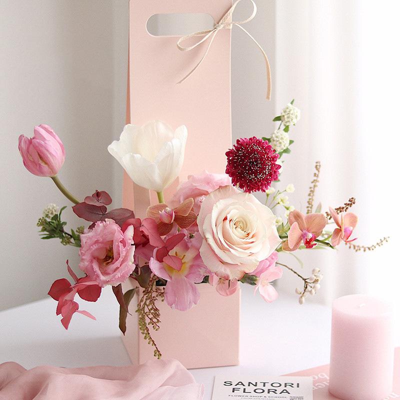 Cesta de Flores Portátil de Papel Caja de Flores para el Día de San Valentín Bolsa de Flores Material Caja de Flores Portátil Bolsa de Flores de Papel Kraft