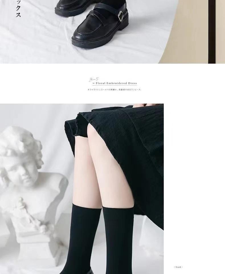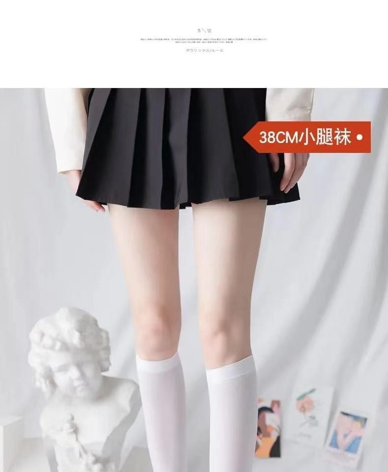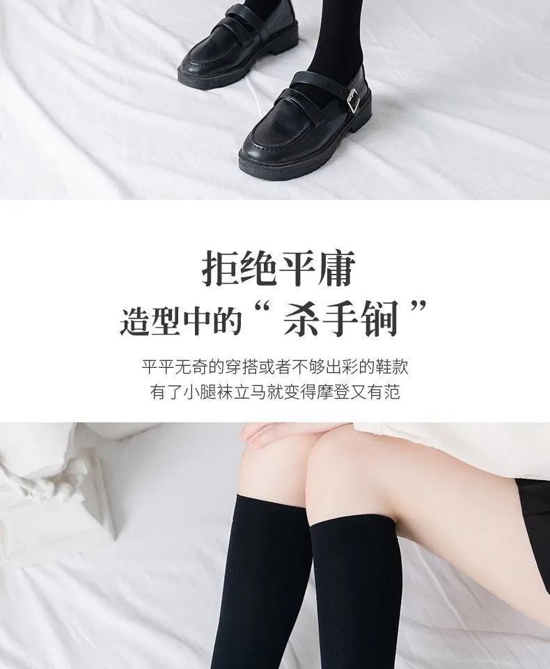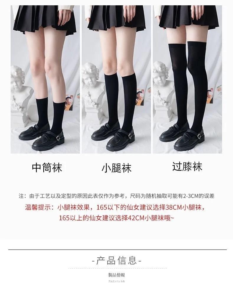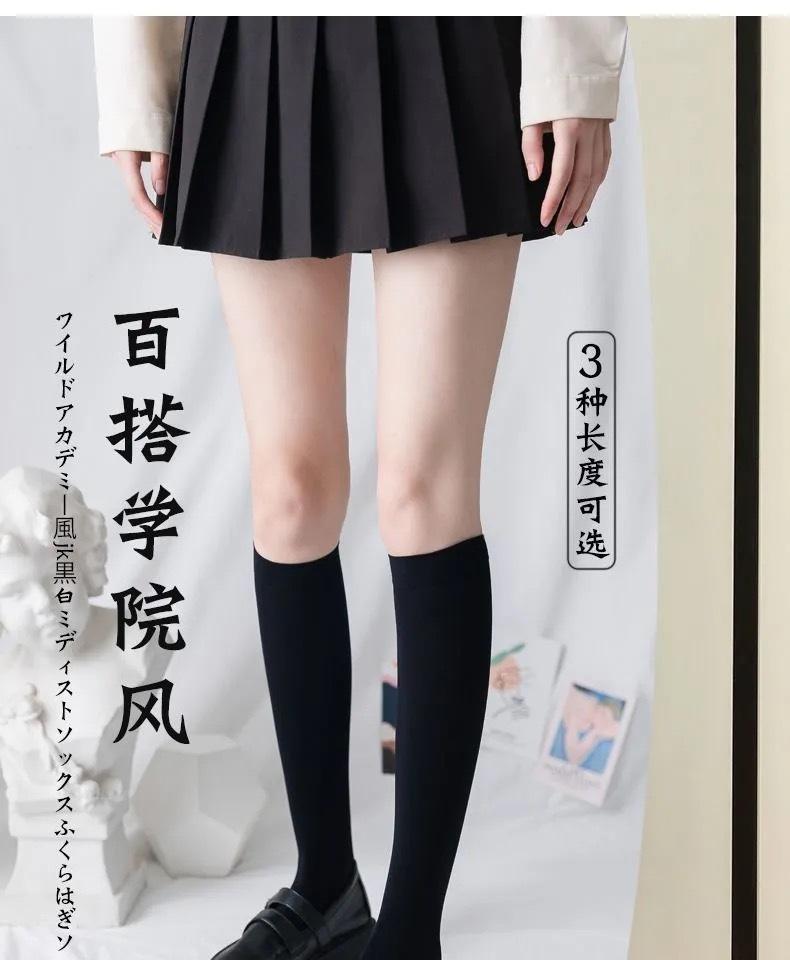 Calcetines de pantorrilla de terciopelo fino de primavera y verano Calcetines japoneses hasta la rodilla Uniforme jk para mujer Calcetines largos negros y blancos de micro-presión hasta media pantorrilla para mujer