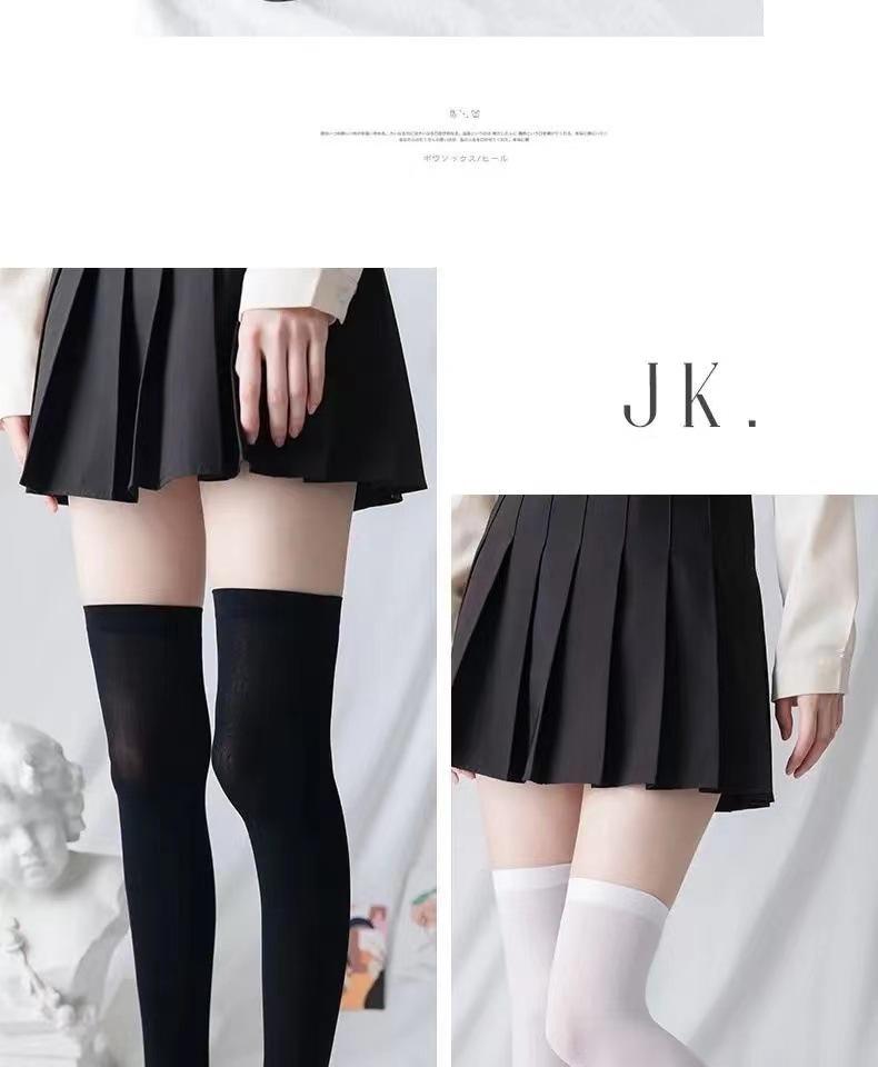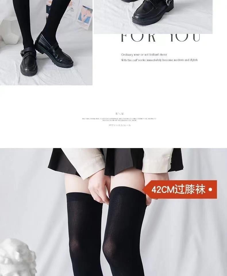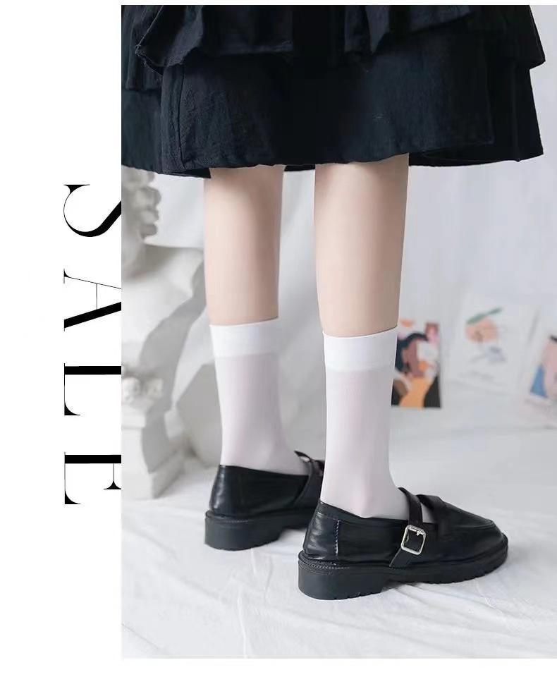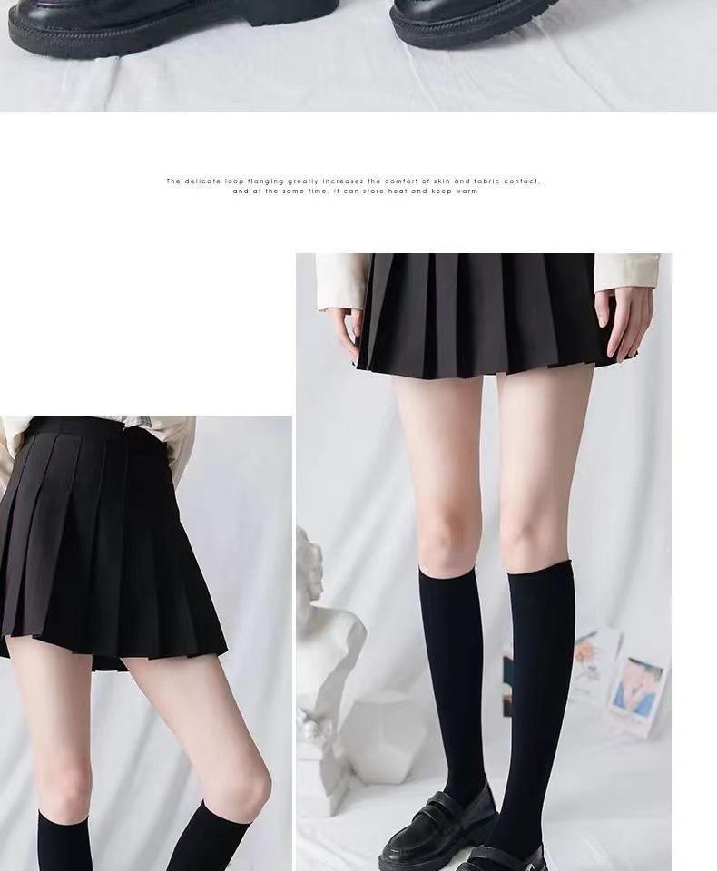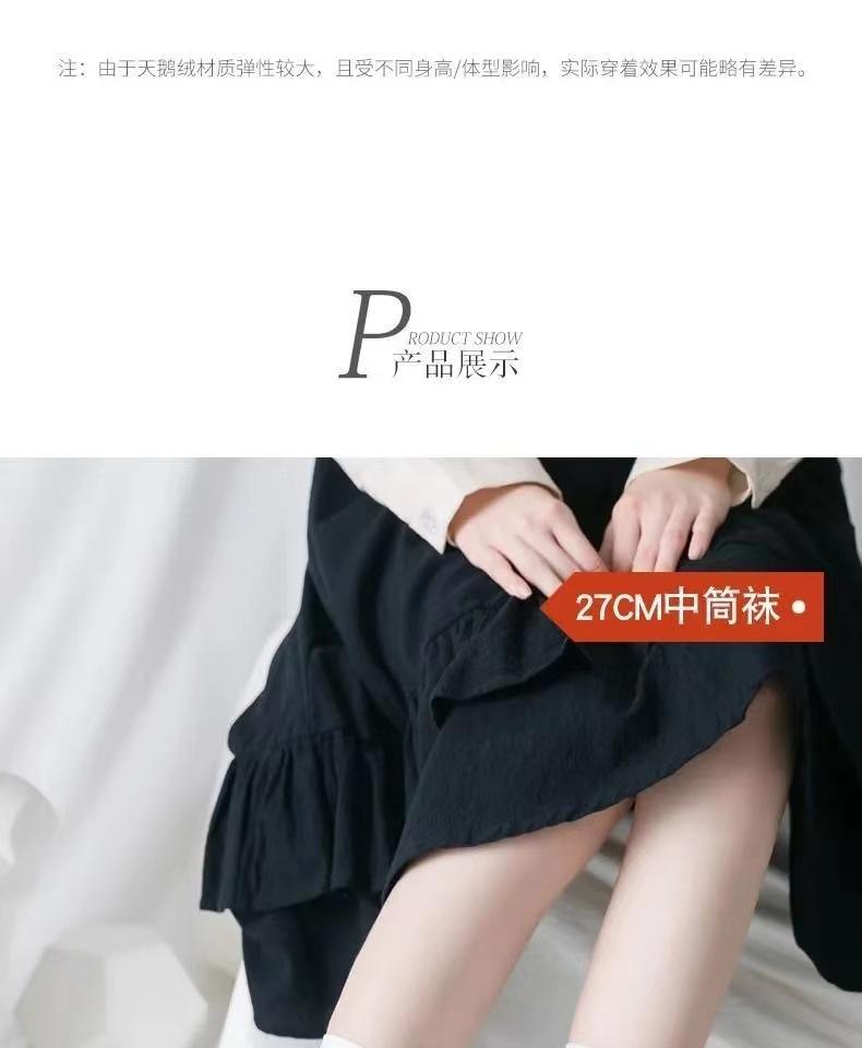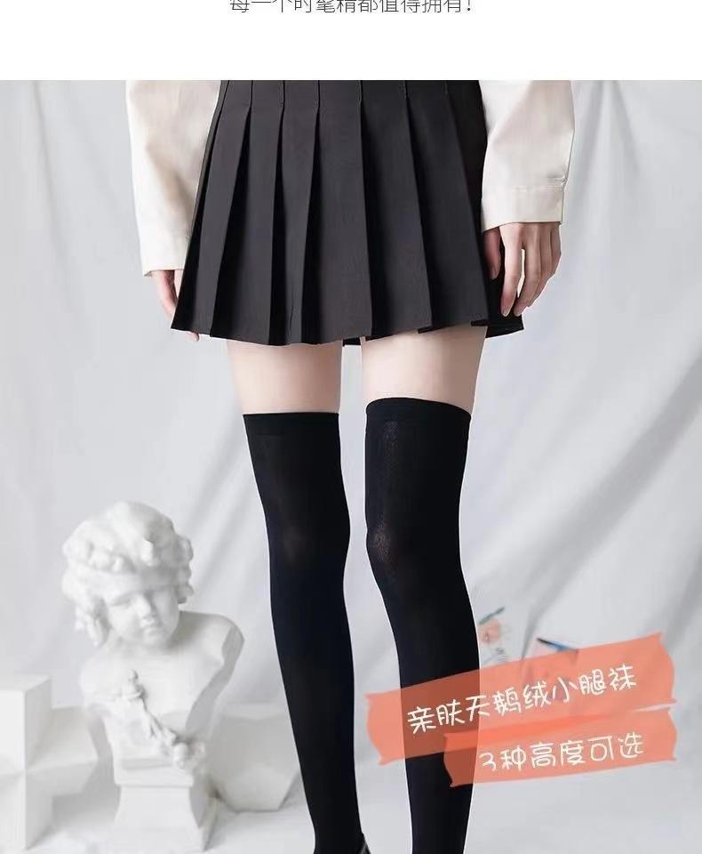 Calcetines de pantorrilla de terciopelo fino de primavera y verano Calcetines japoneses hasta la rodilla Uniforme jk para mujer Calcetines largos negros y blancos de micro-presión hasta media pantorrilla para mujer