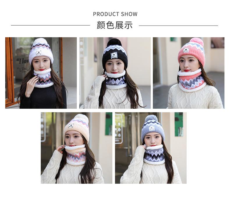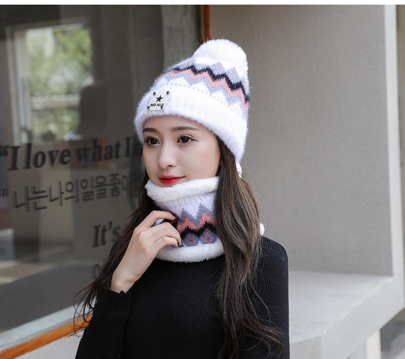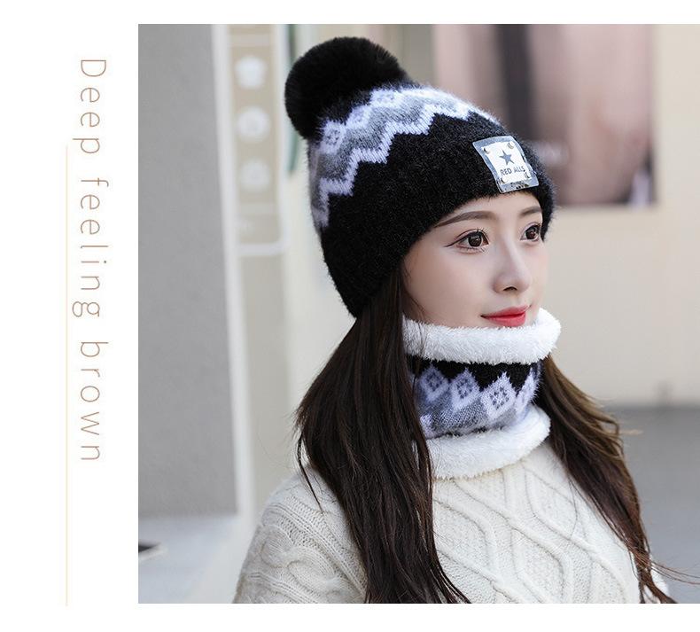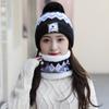 Set de dos piezas de sombrero y bufanda de otoño e invierno transfronterizo para mujer, sombrero de lana de punto cálido con terciopelo para invierno, bufanda de moda estilo coreano