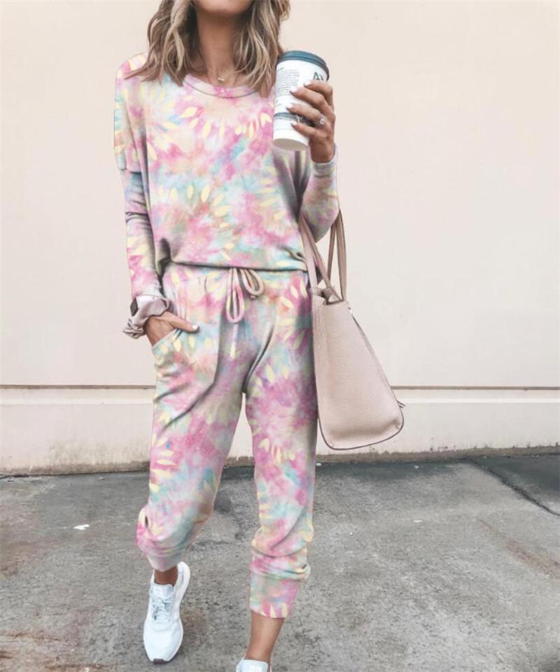Ropa de mujer de comercio exterior de Amazon AliExpress 2023, traje deportivo informal de manga larga con estampado europeo y americano para otoño e invierno.