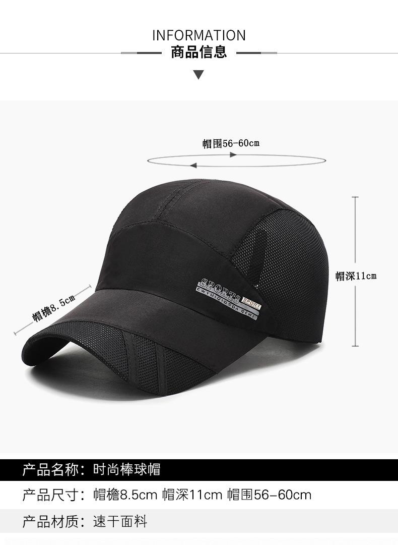 Gorra de sol de verano para hombre, estilo coreano, de béisbol, de malla de secado rápido, transpirable, con visera y logotipo impreso.