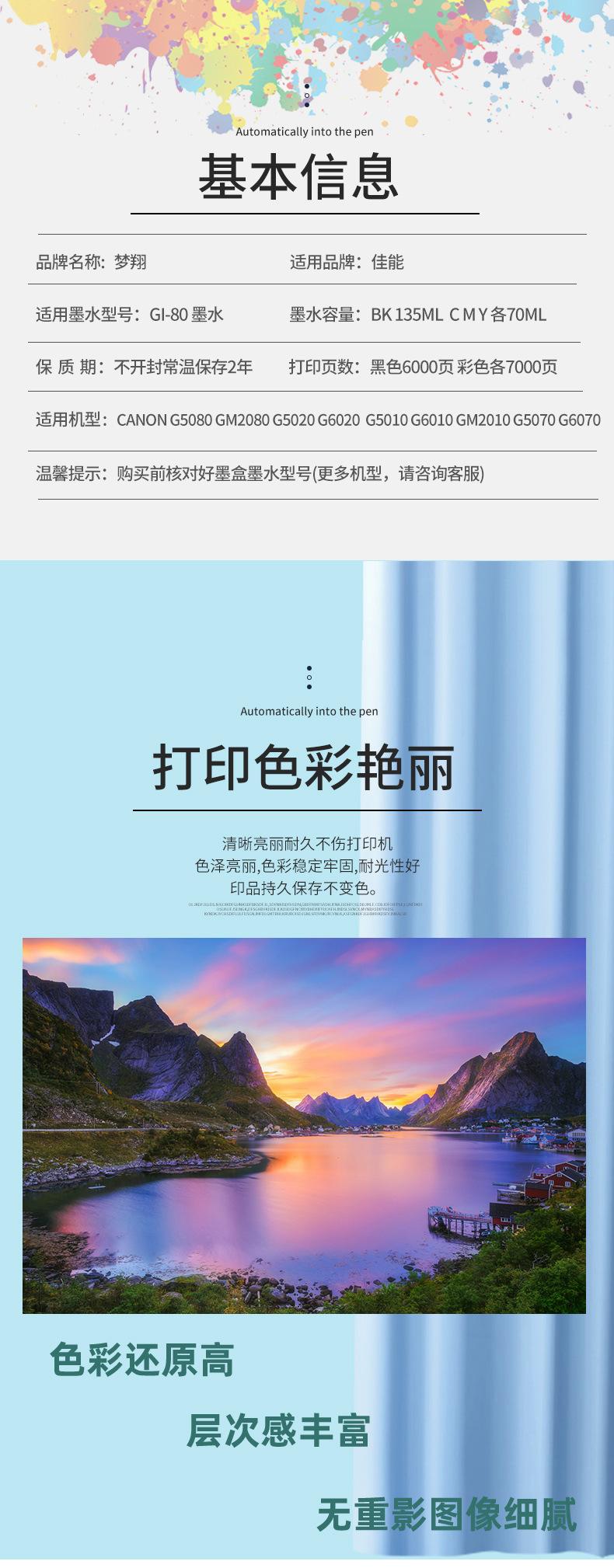 Aplicable a Canon/Botella de tinta Canon serie GI-80 (aplicable a G6080/G7080/G5080)