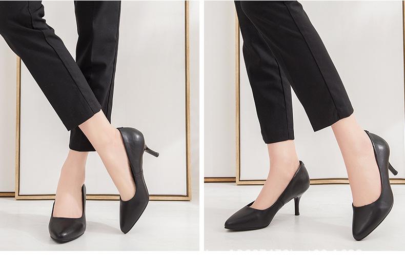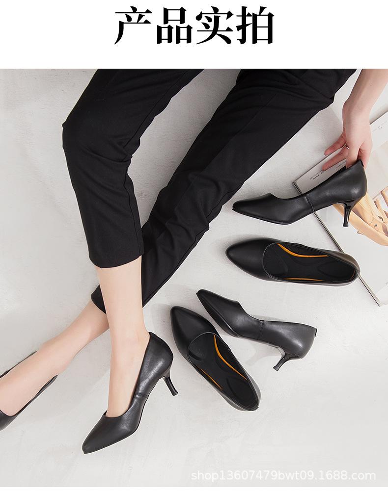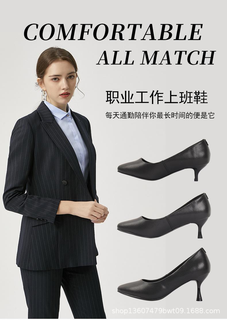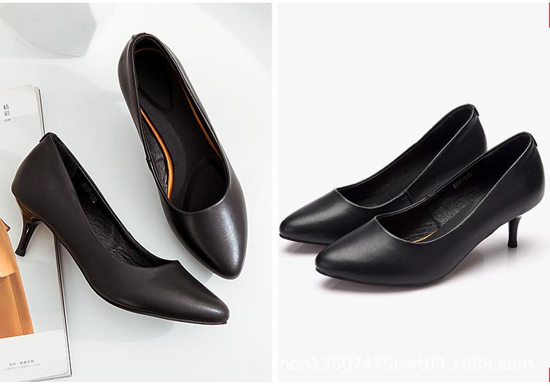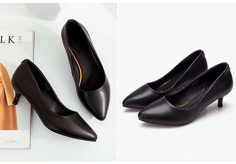 Zapatos de Piel de Punta para Mujer Vestido Tacones Altos Tacón Bajo Boca Baja Zapatos de Piel Negros Zapatos de Mujer para el Trabajo y Entrevista de Carrera