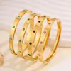Pulsera de Acero de Titanio con Diseño Circular, Exquisitos Diamantes Color Dorado, Electrochapado de 18K, Sensación de Alta Gama, Estilo de Lujo Ligero a la Moda, Pulsera Abierta para Mujeres