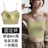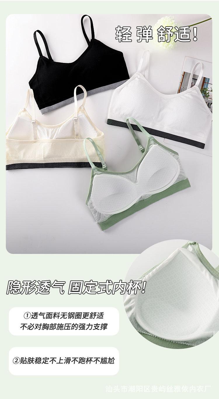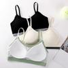 Top tubo sin costuras de color contrastante con espalda de belleza, con copa fija de una pieza sin aro de acero, ropa interior deportiva básica para mujer
