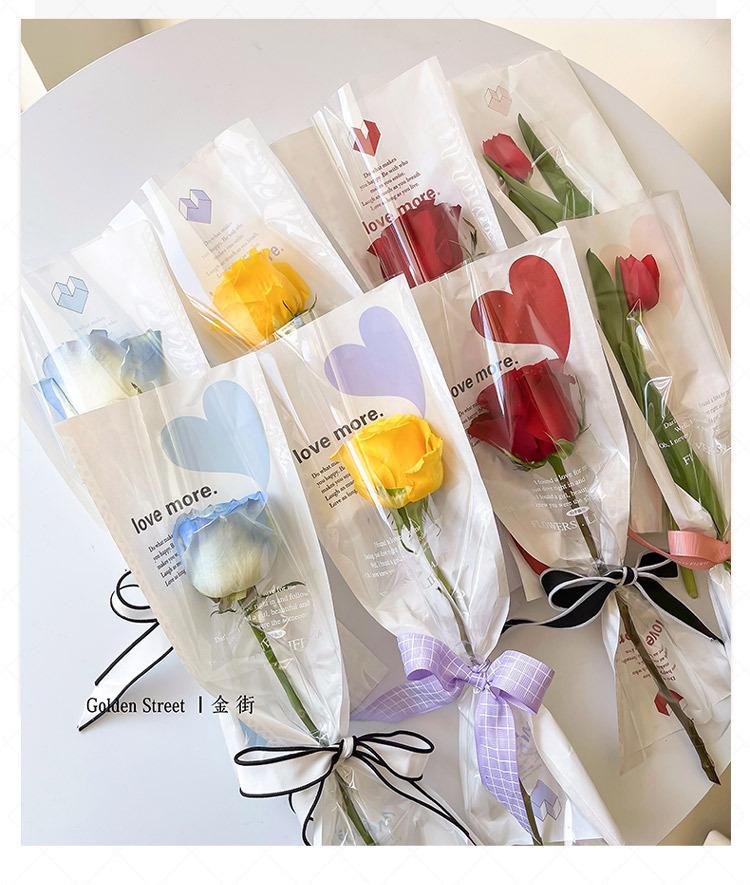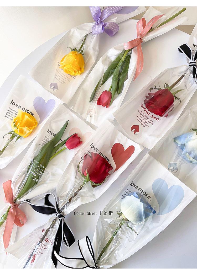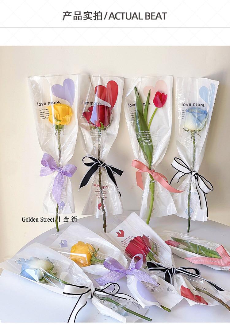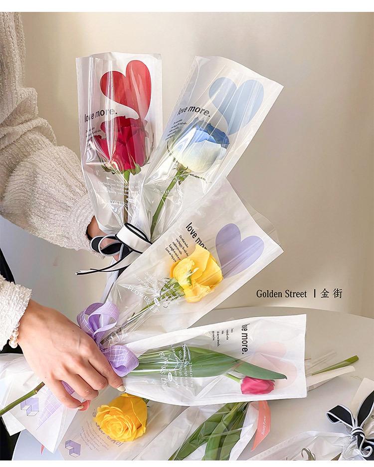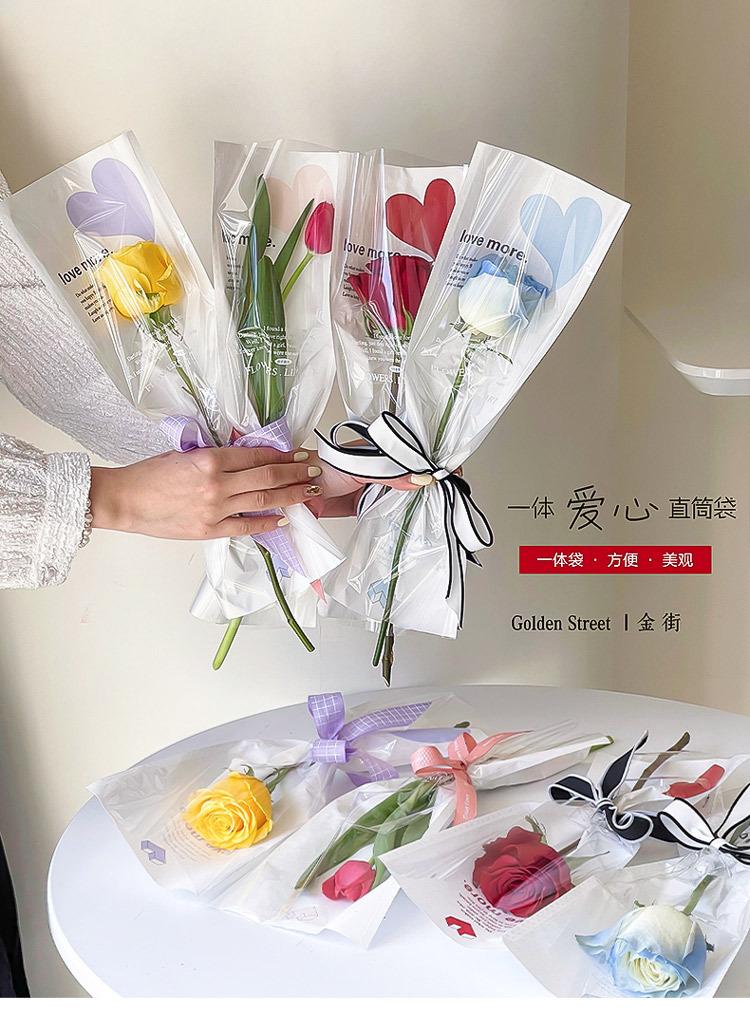Bolsa individual de flores, bolsa de OPP para flores, bolsa de tubo recto con forma de amor, ramo de rosas, bolsa transparente, material floral al por mayor