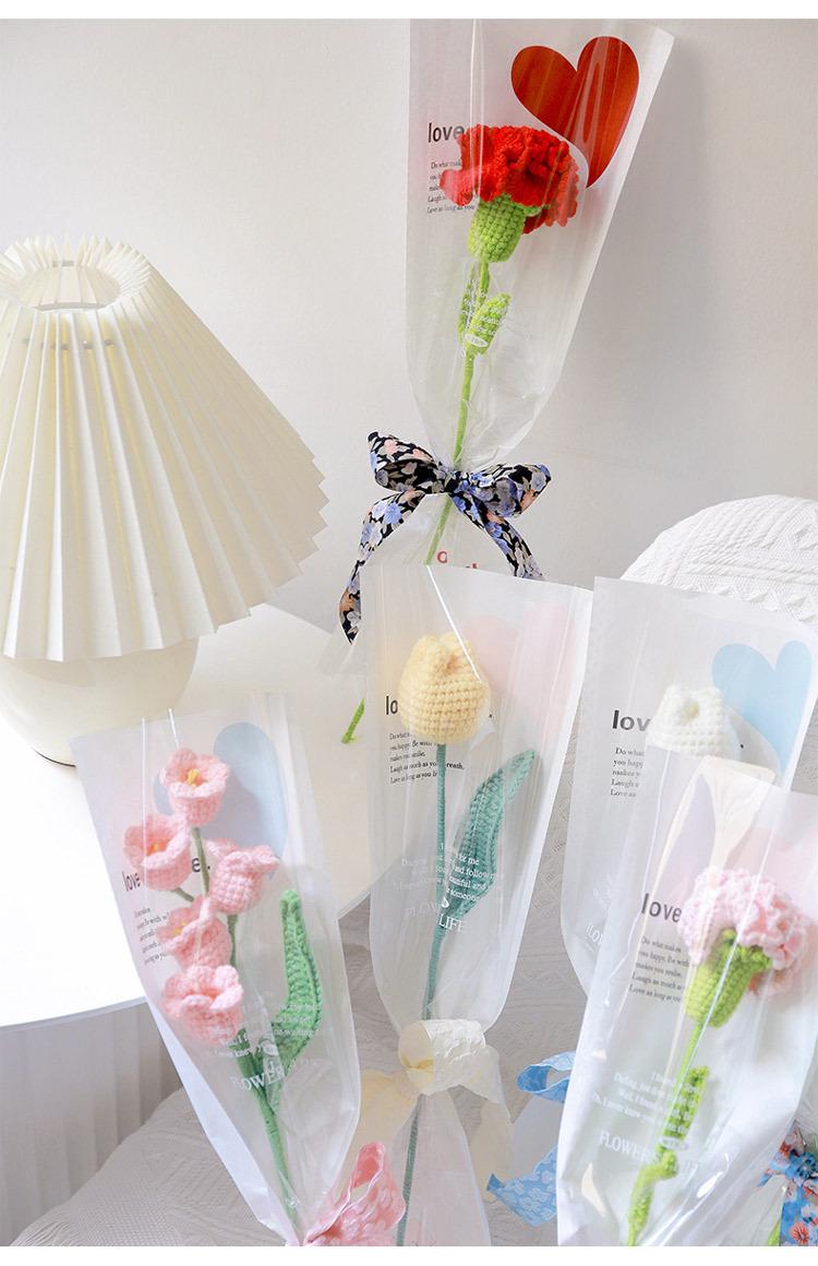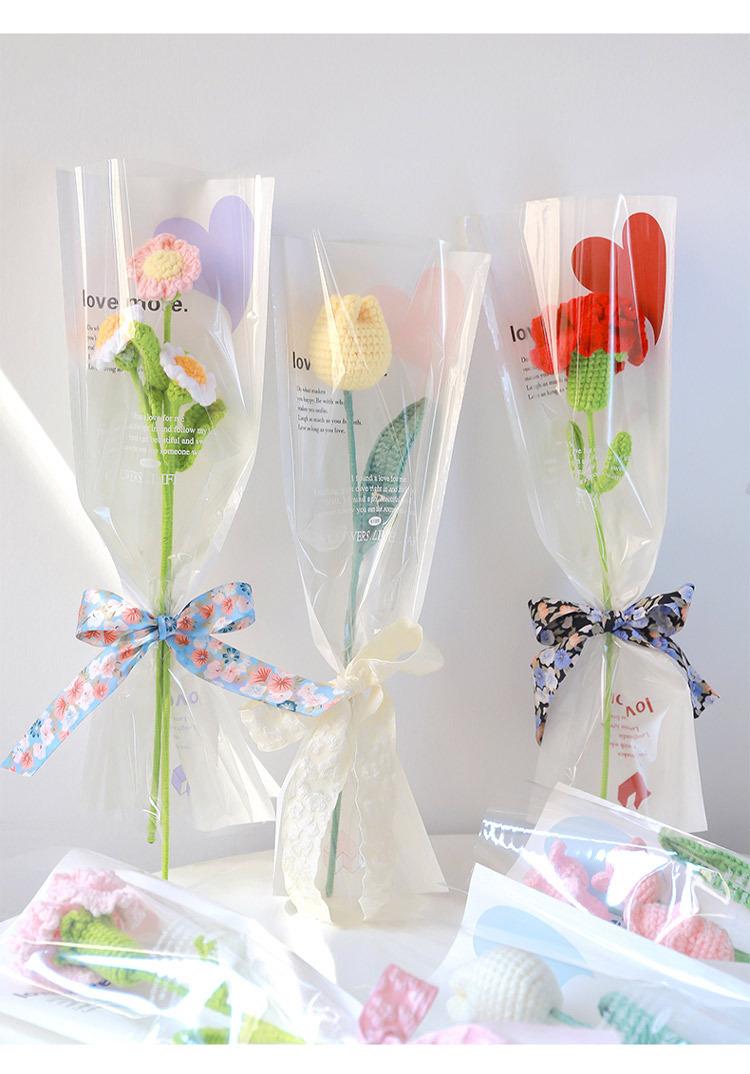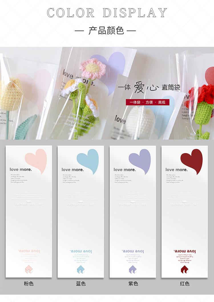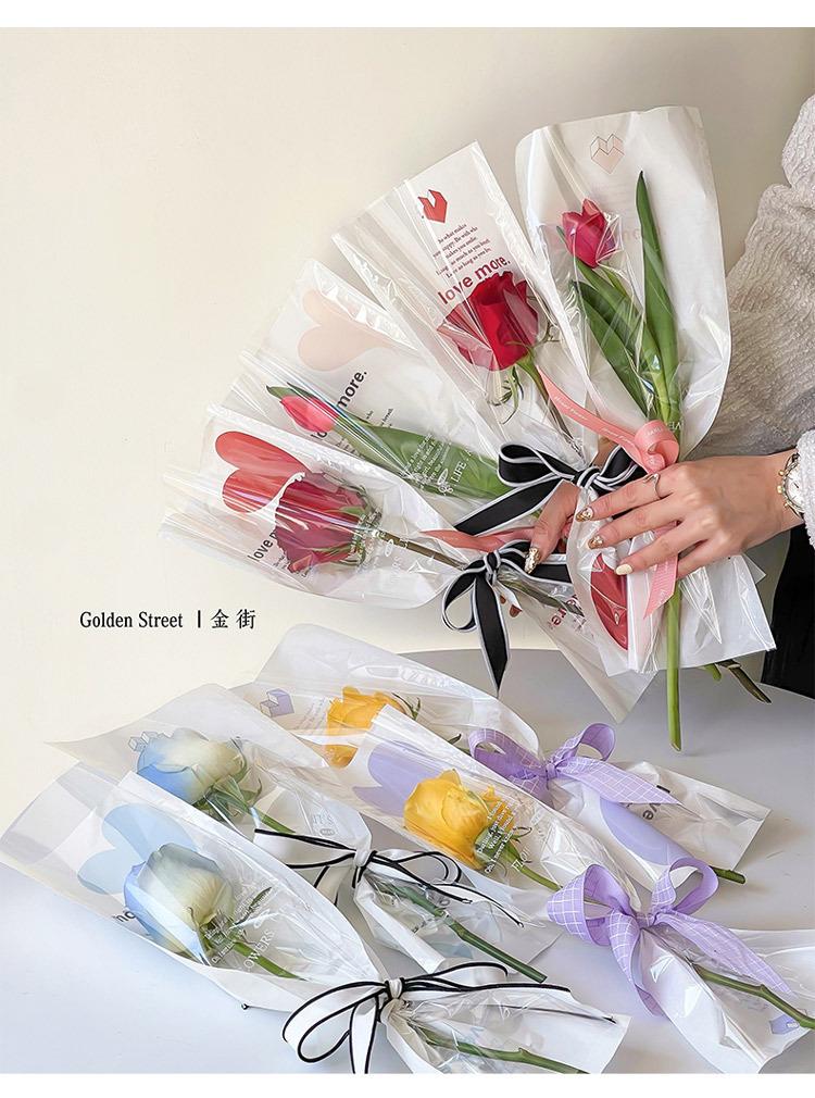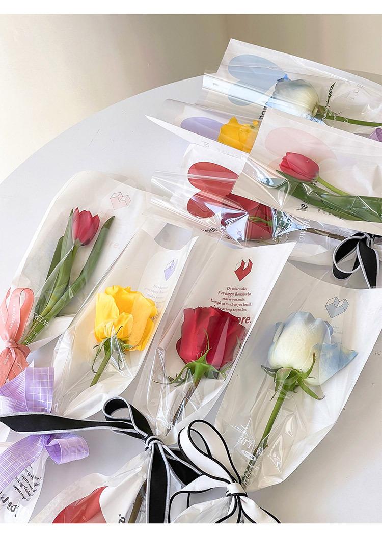 Bolsa individual de flores, bolsa de OPP para flores, bolsa de tubo recto con forma de amor, ramo de rosas, bolsa transparente, material floral al por mayor