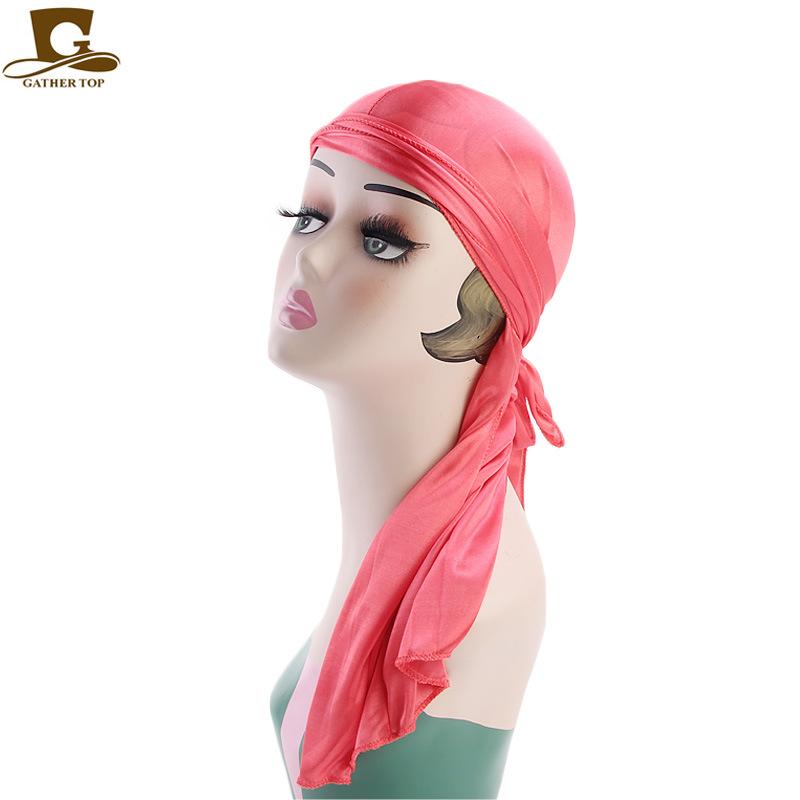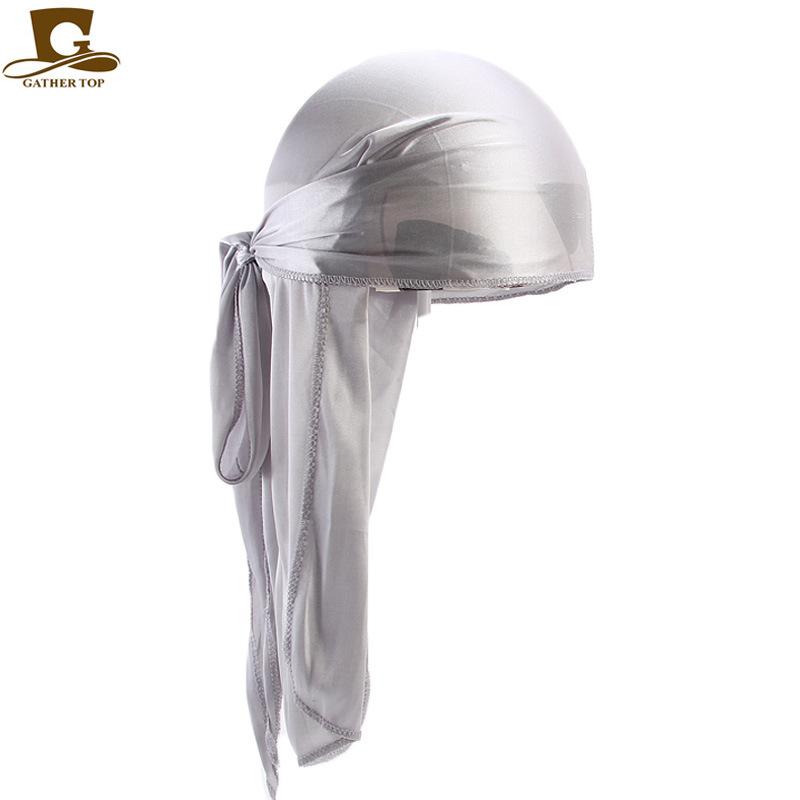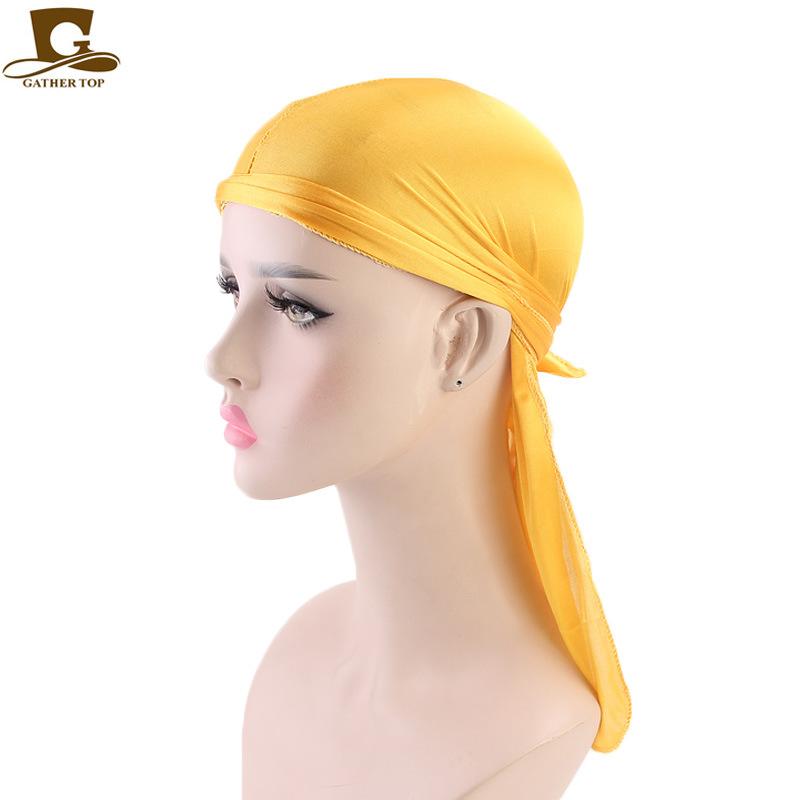 | Turbante de cola larga popular europeo y americano para hombre y mujer, imitación seda, sombrero pirata, durag sedoso TJM-05C |