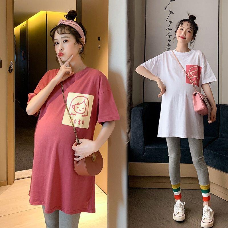 Ropa de maternidad de algodón puro falda de verano top de verano vestido midi ropa de maternidad de verano a la moda camiseta camisa básica