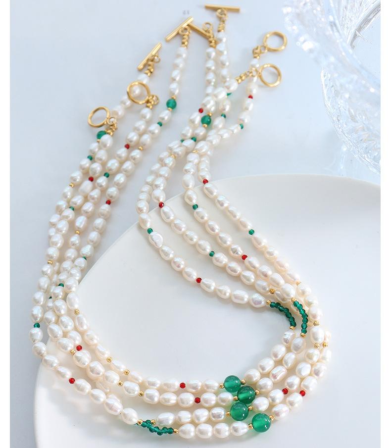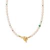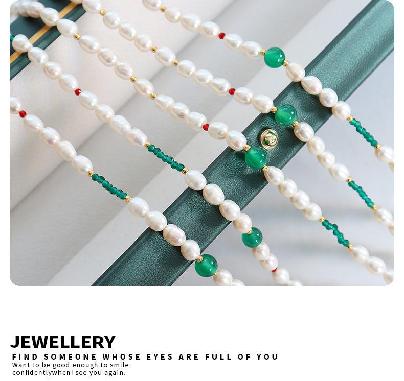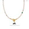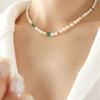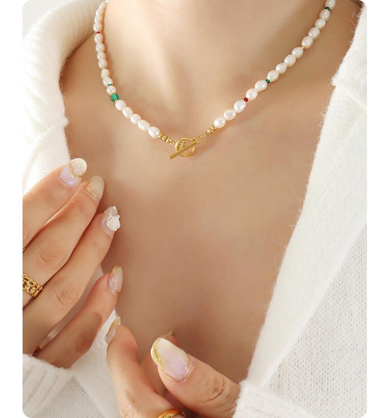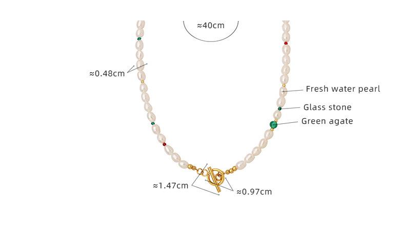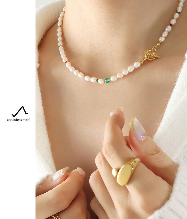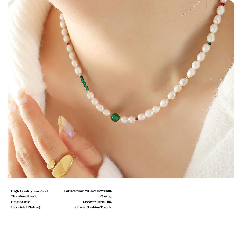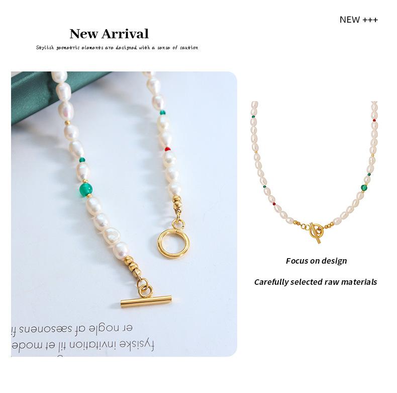 Collar de cuentas de ágata natural francesa con perlas de agua dulce, piedra de vidrio, hebilla geométrica, acero de titanio, joyería personalizada de moda