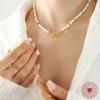 P1371-gold natural freshwater pearl necklace 40cm, Natural flaws in freshwater pearls are normal