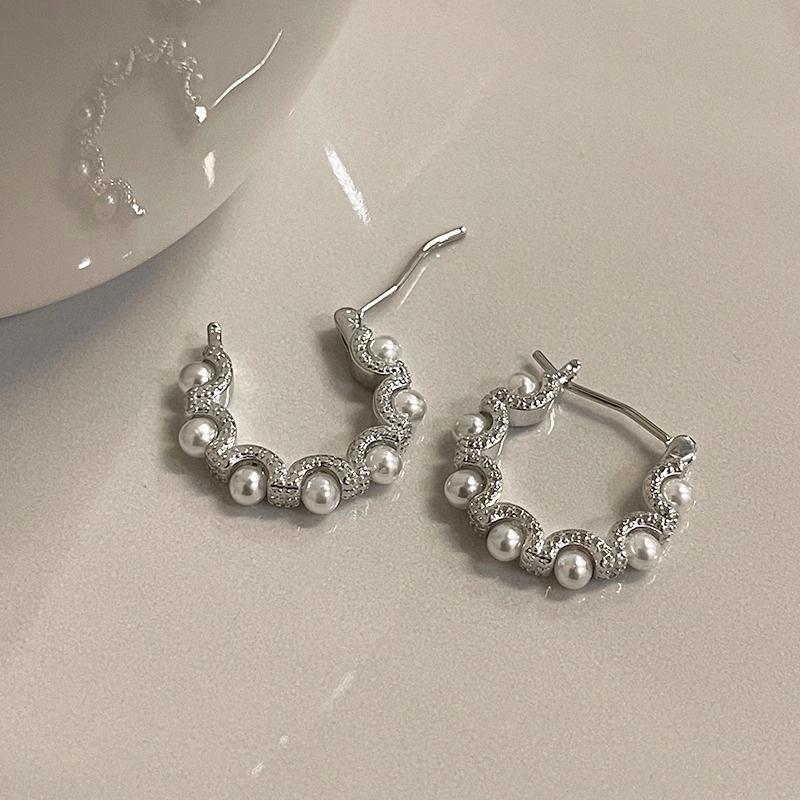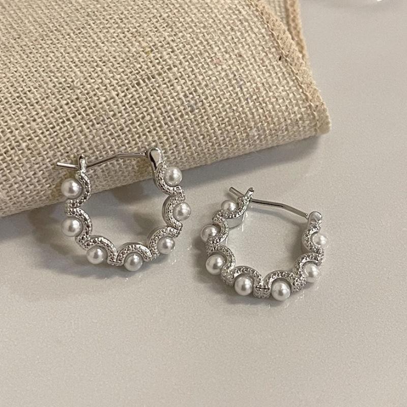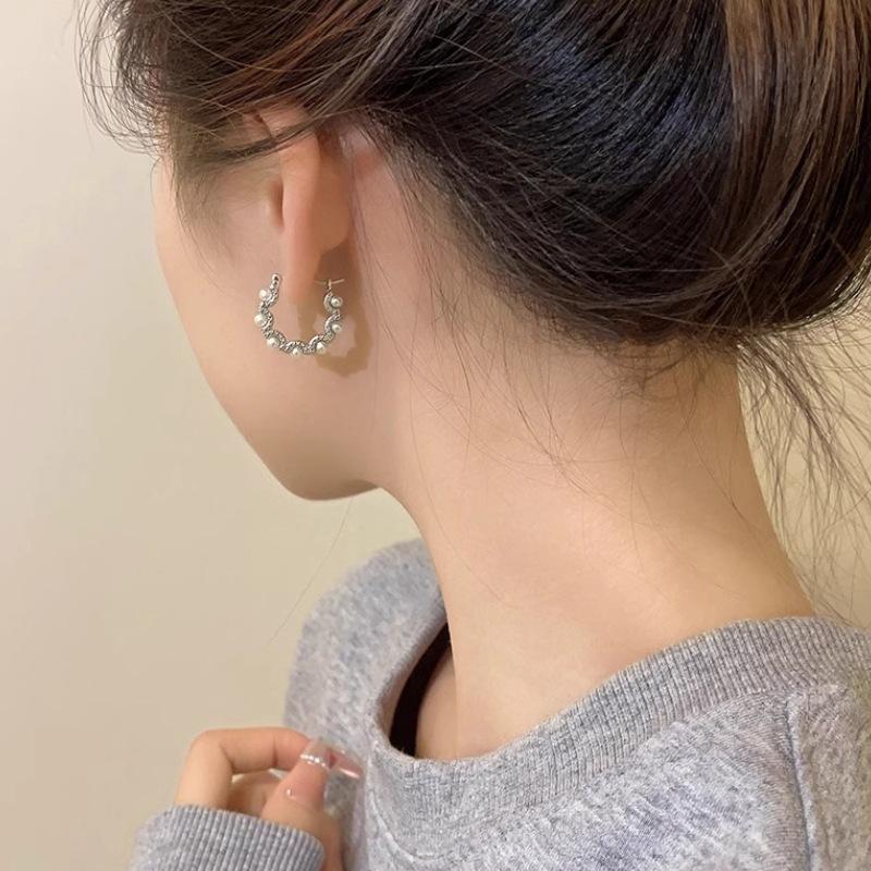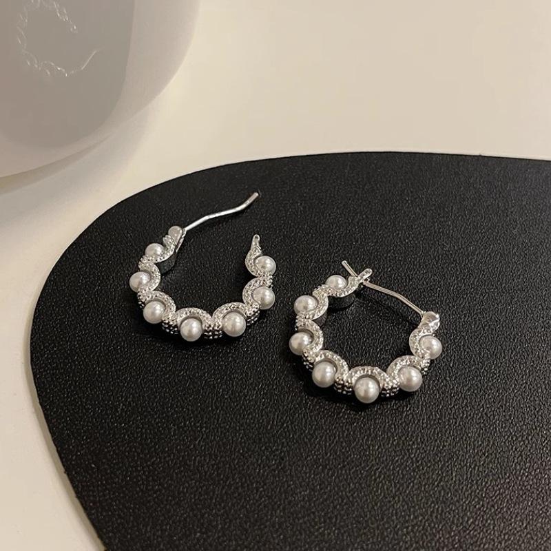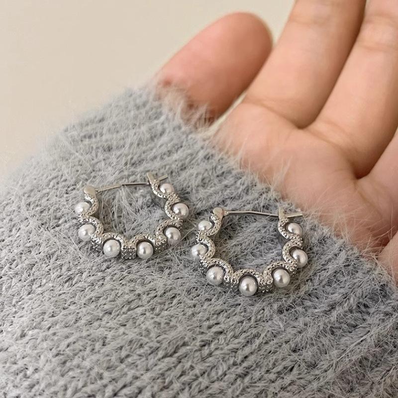Pendientes de perlas circulares con diseño de nicho, ligeros y lujosos, para mujer. Nuevos pendientes retro franceses únicos de celebridades en línea.