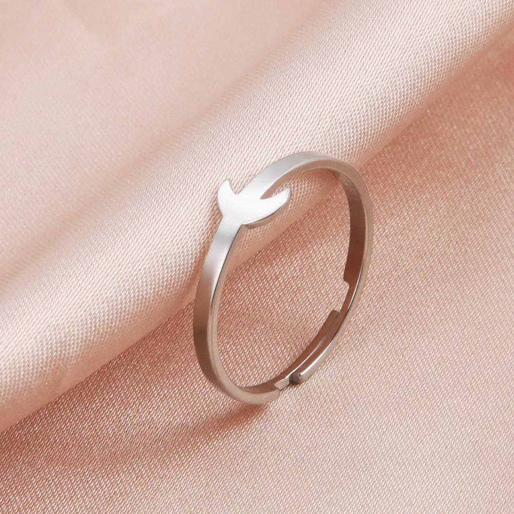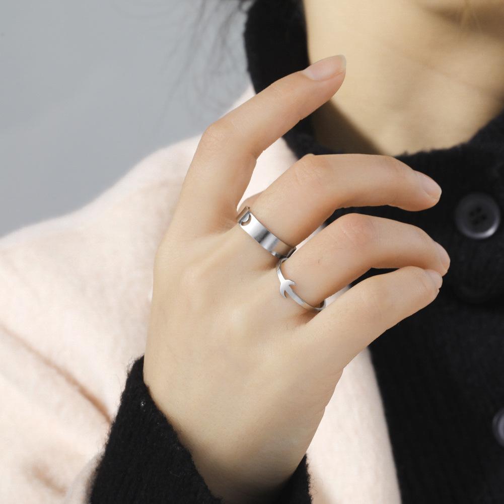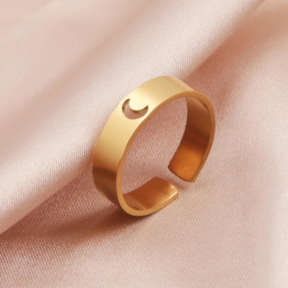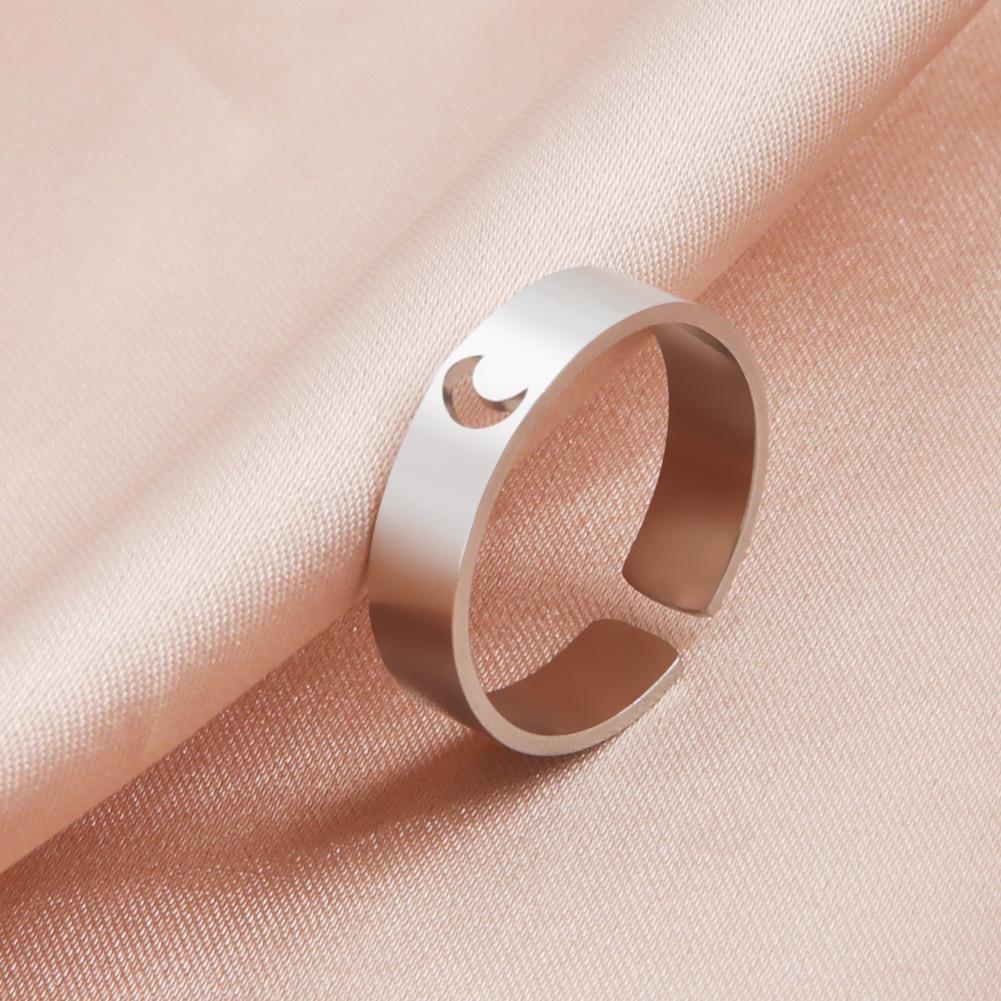 Anillo abierto creciente hueco de acero titanio Regalo para mujer joyería de cita Día de San Valentín anillo de acero inoxidable regalo de cumpleaños