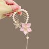Horquilla con borla de flores y perlas para mujer, accesorio para el pelo con forma de disco para la parte posterior de la cabeza, con forma de bola, hebilla de cola de caballo, anilla para el pelo, pinza de fijación