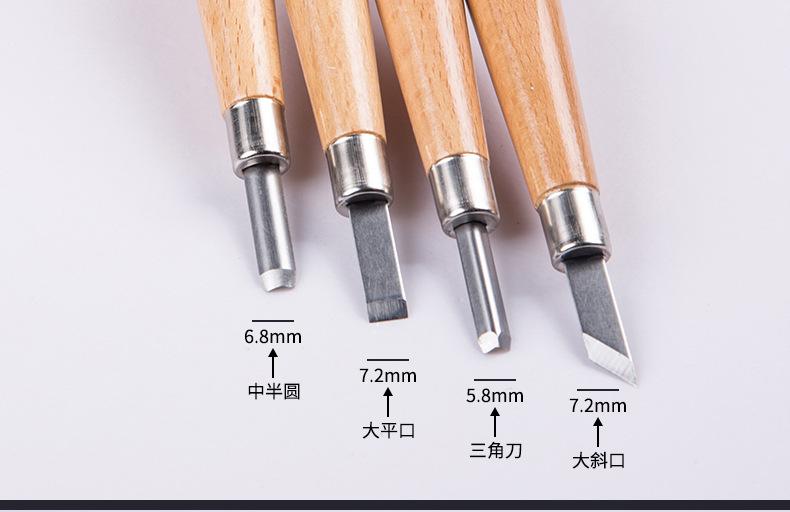 Paquete de 4: boca plana grande, boca oblicua grande, semicírculo mediano, cuchillo triangular