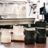 Bule de chá estilo italiano de aço inoxidável 304 com escala e boca pontiaguda, jarra de leite com boca de guindaste, copo de leite com flor para café