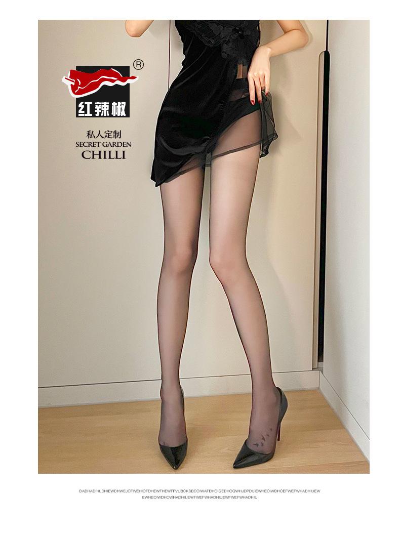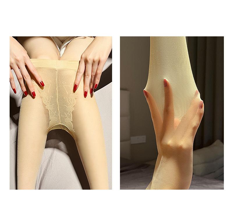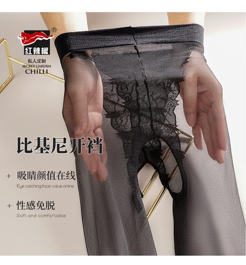 Pantyhose Abierta de Pimiento Rojo Insertable Negro Seda Sexy Ultradelgada Medias de Sexo Pantyhose de Entrepierna Libre para Bikini de Mujer