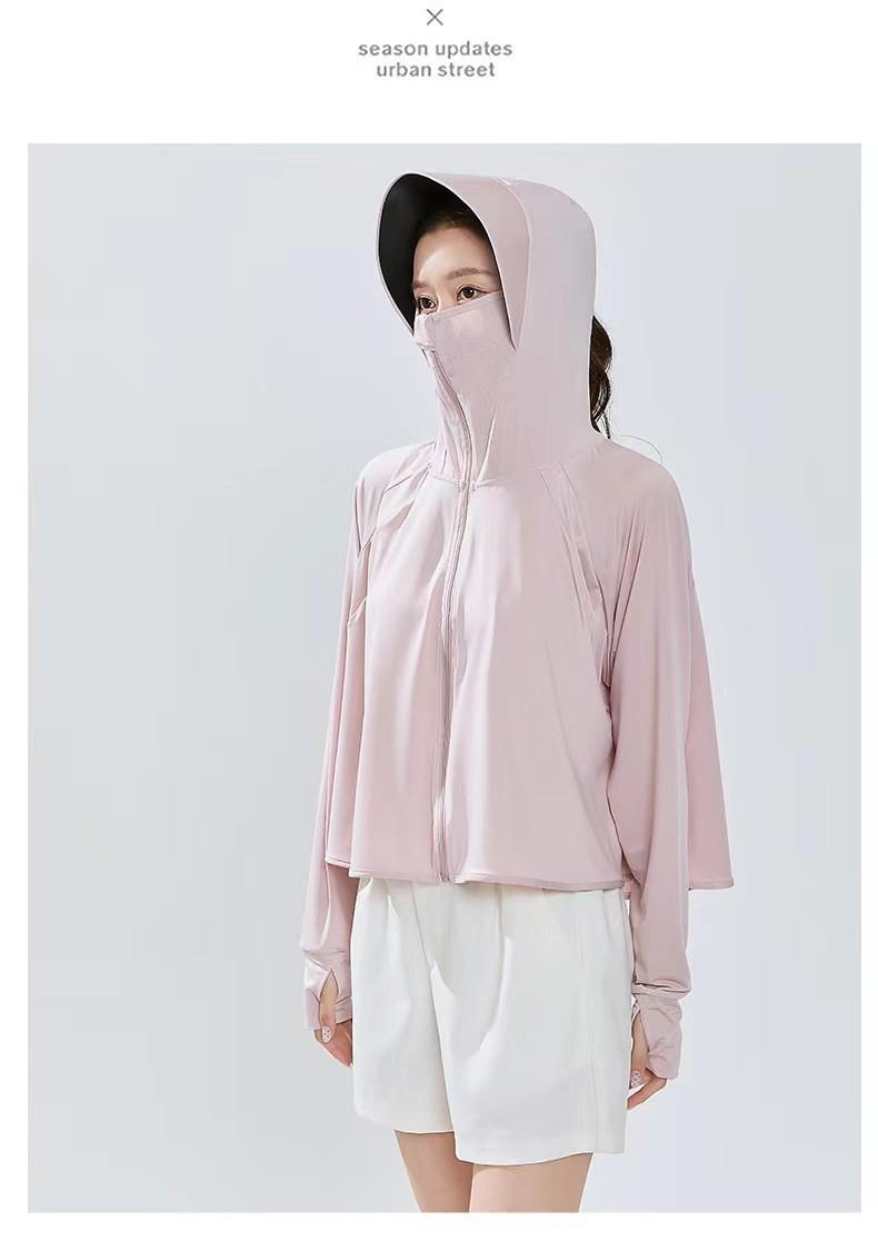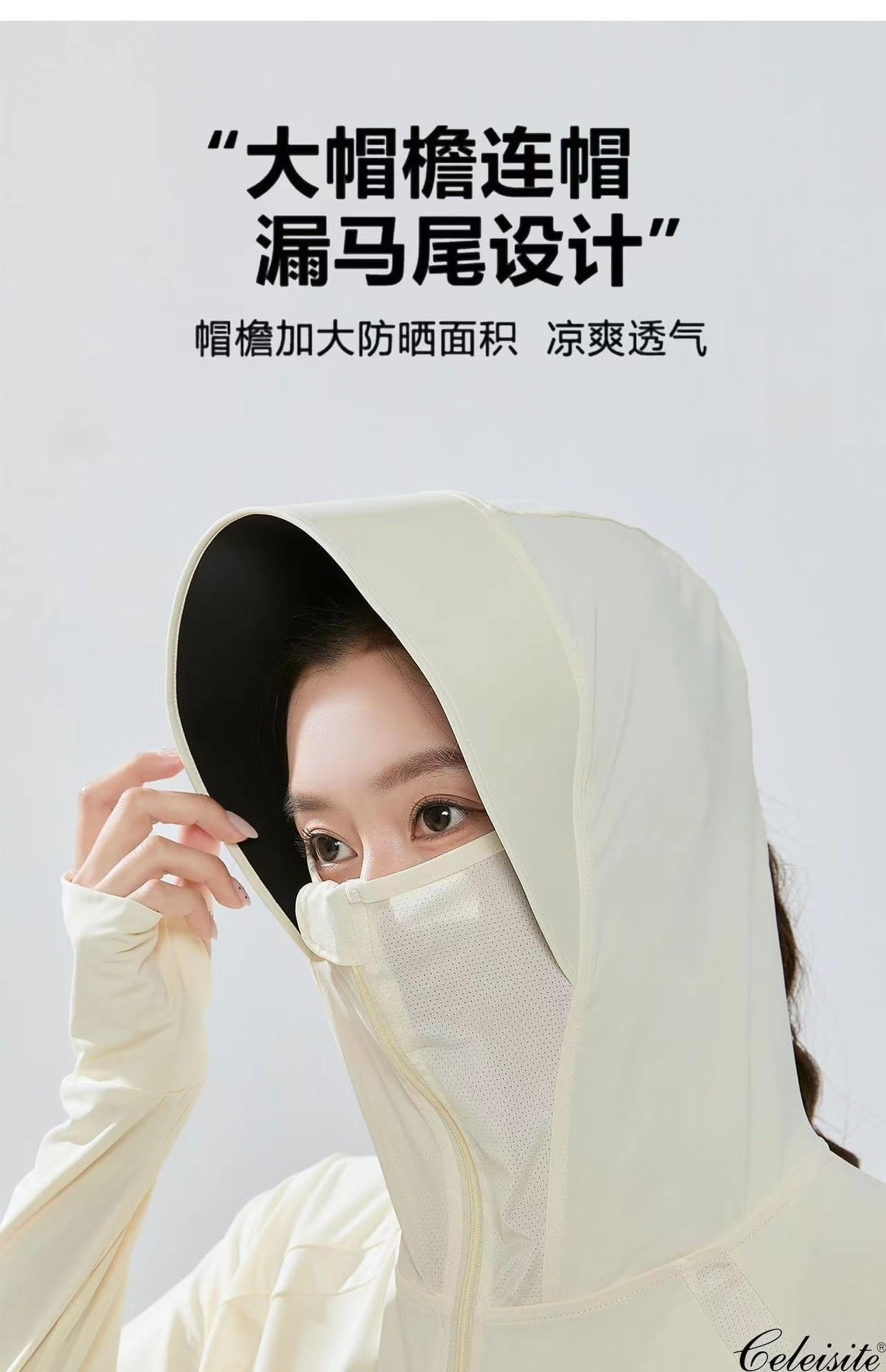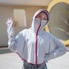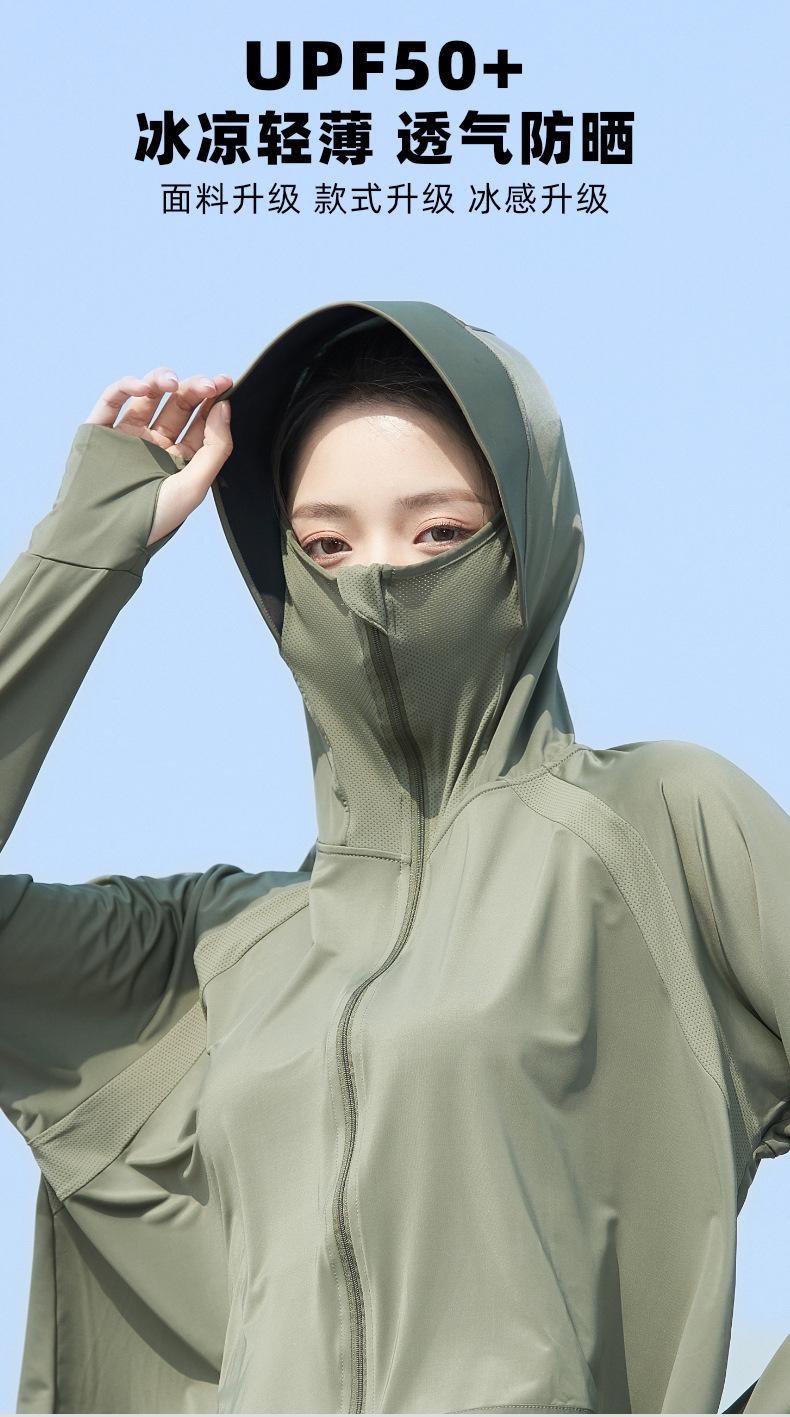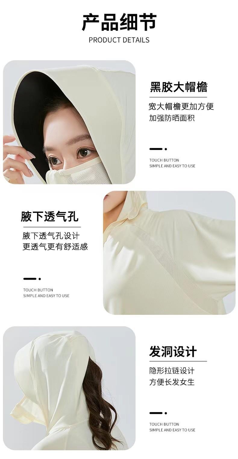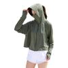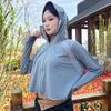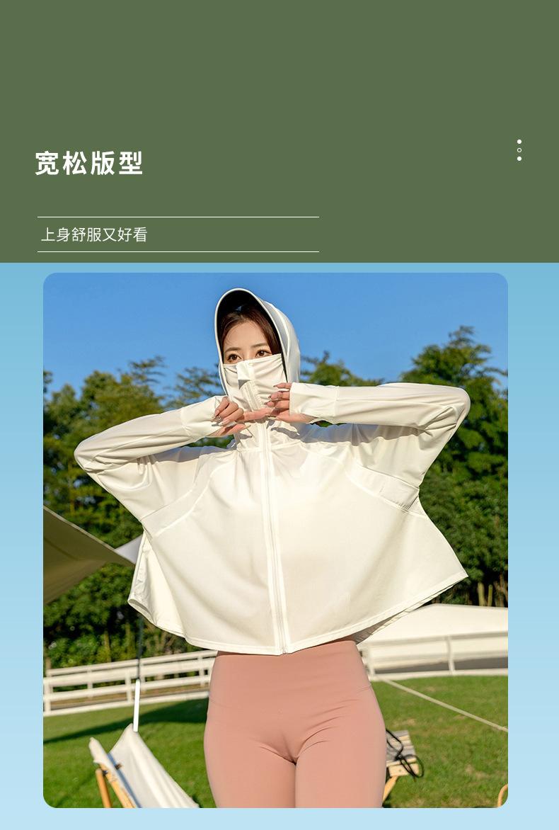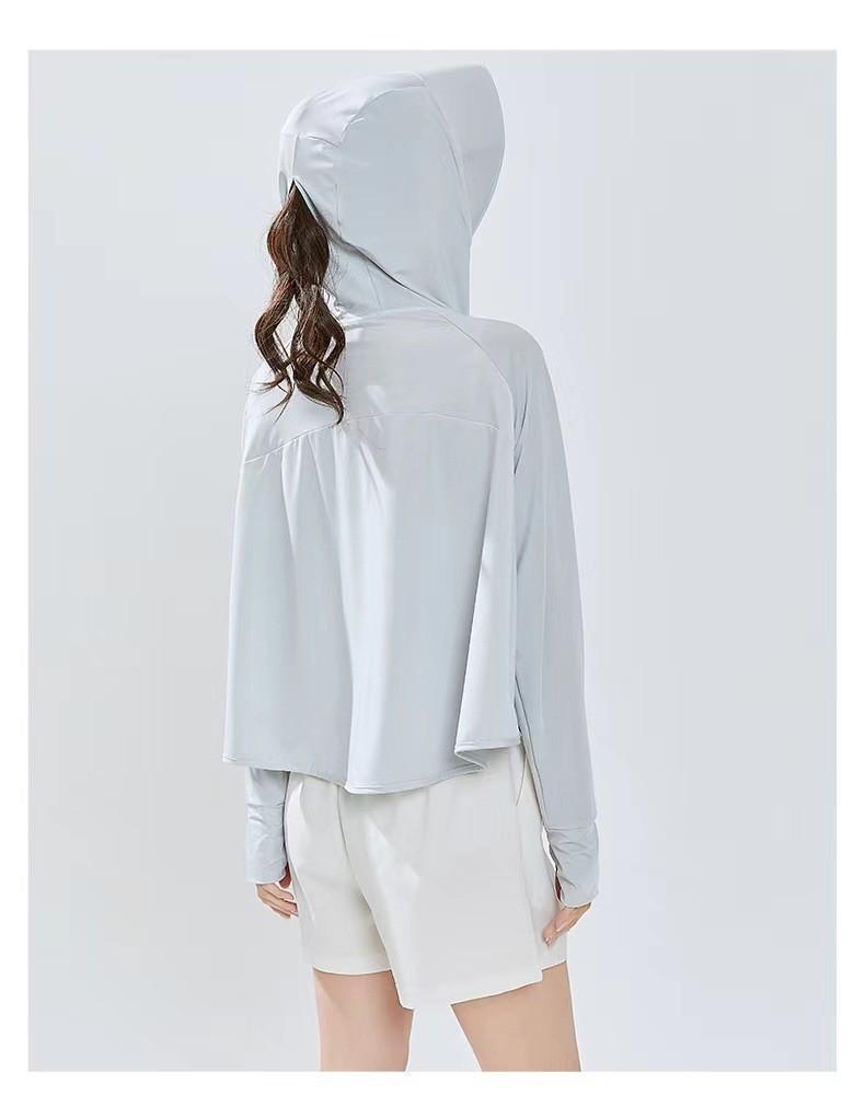 Ropa de Protección Solar de Seda de Hielo para Mujer, Ligera, Transpirable, Top de Protección Solar para Verano, Protección UV, Chaqueta con Capucha de Goma Negra, Ropa de Protección Solar