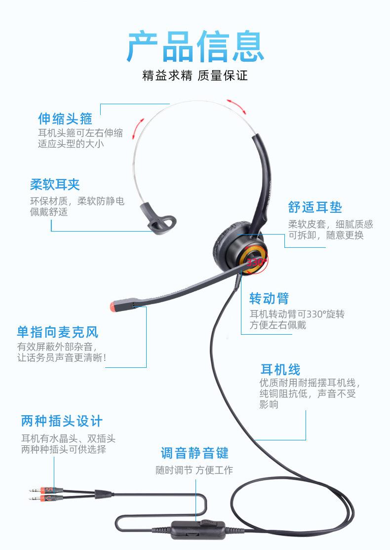 Auriculares de operador Hangpu V168NC, auriculares telefónicos, auriculares de centro de llamadas de servicio al cliente, auriculares con reducción de ruido