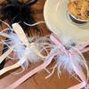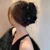 Nueva horquilla grande de doble cara con plumas para el cabello, con malla para la parte posterior, con clip de tiburón, con lazo, para el cabello, para el tocado de princesa.