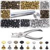 240 remaches de doble cara (6*6+8*8, 30 juegos de cada uno en dorado, plateado, bronce antiguo, pavonado + 3 herramientas + 1 alicate perforador + caja de almacenamiento de 15 compartimentos)
