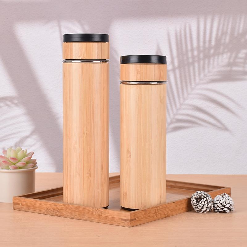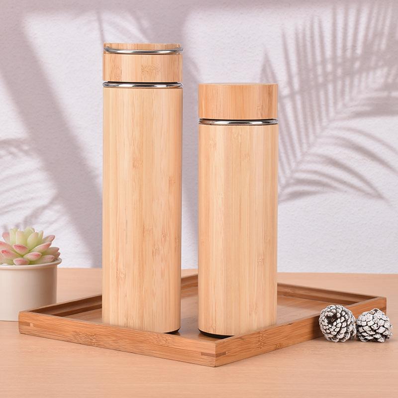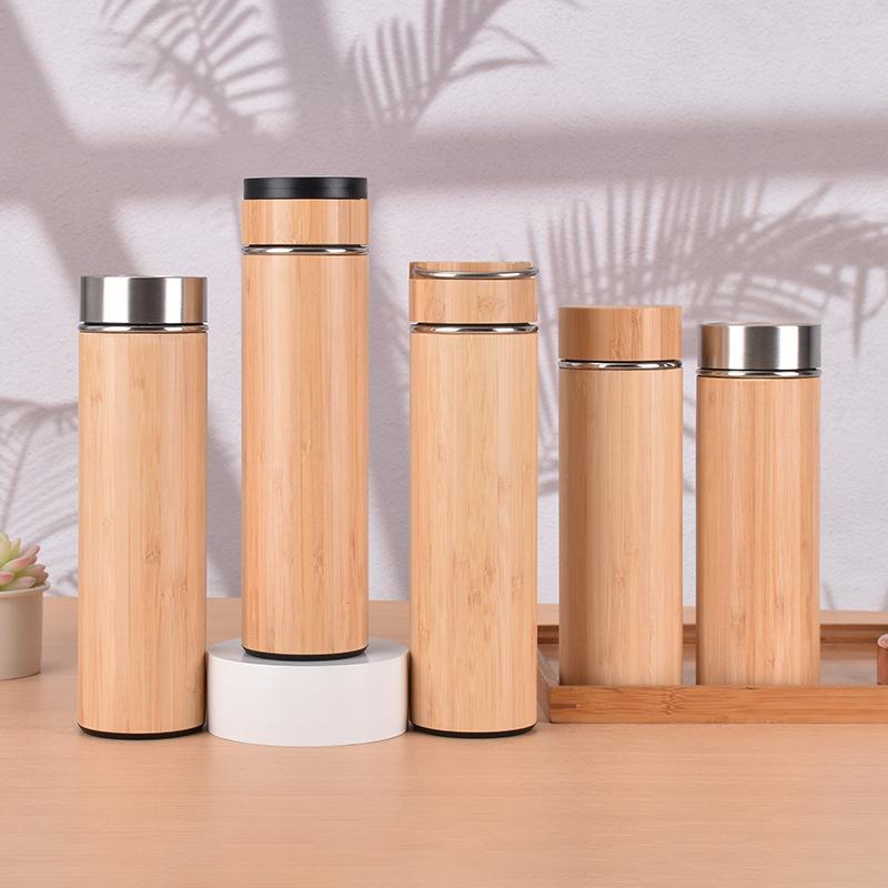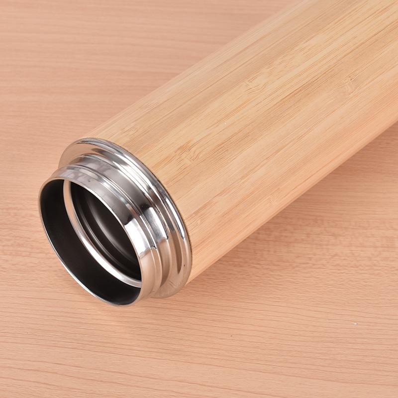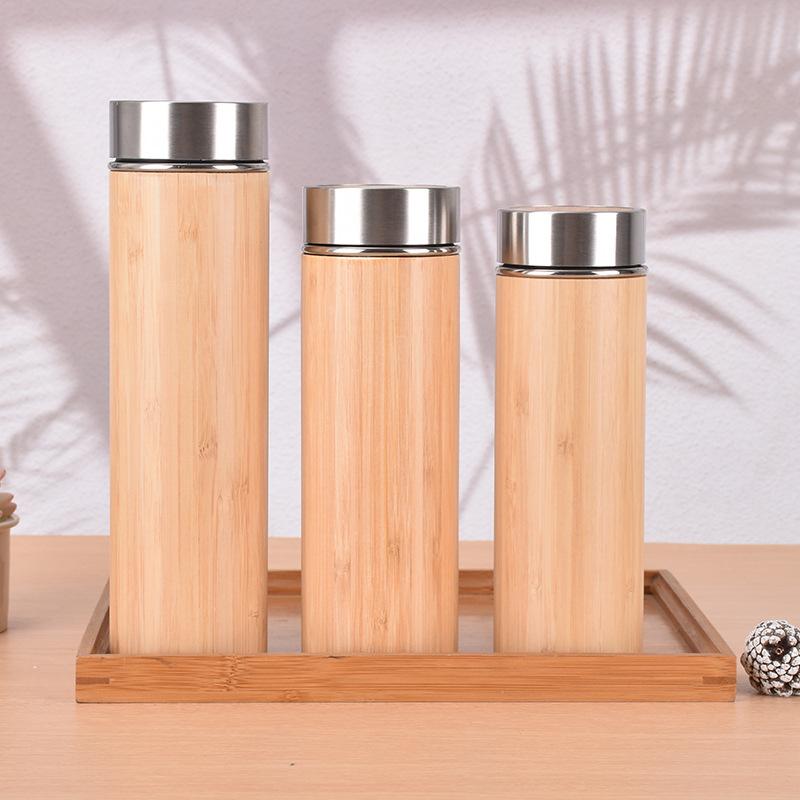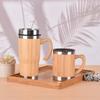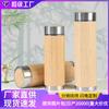Taza de aislamiento de bambú de acero inoxidable 304 transfronteriza, taza recta portátil para automóvil, taza creativa de oficina doble con logotipo