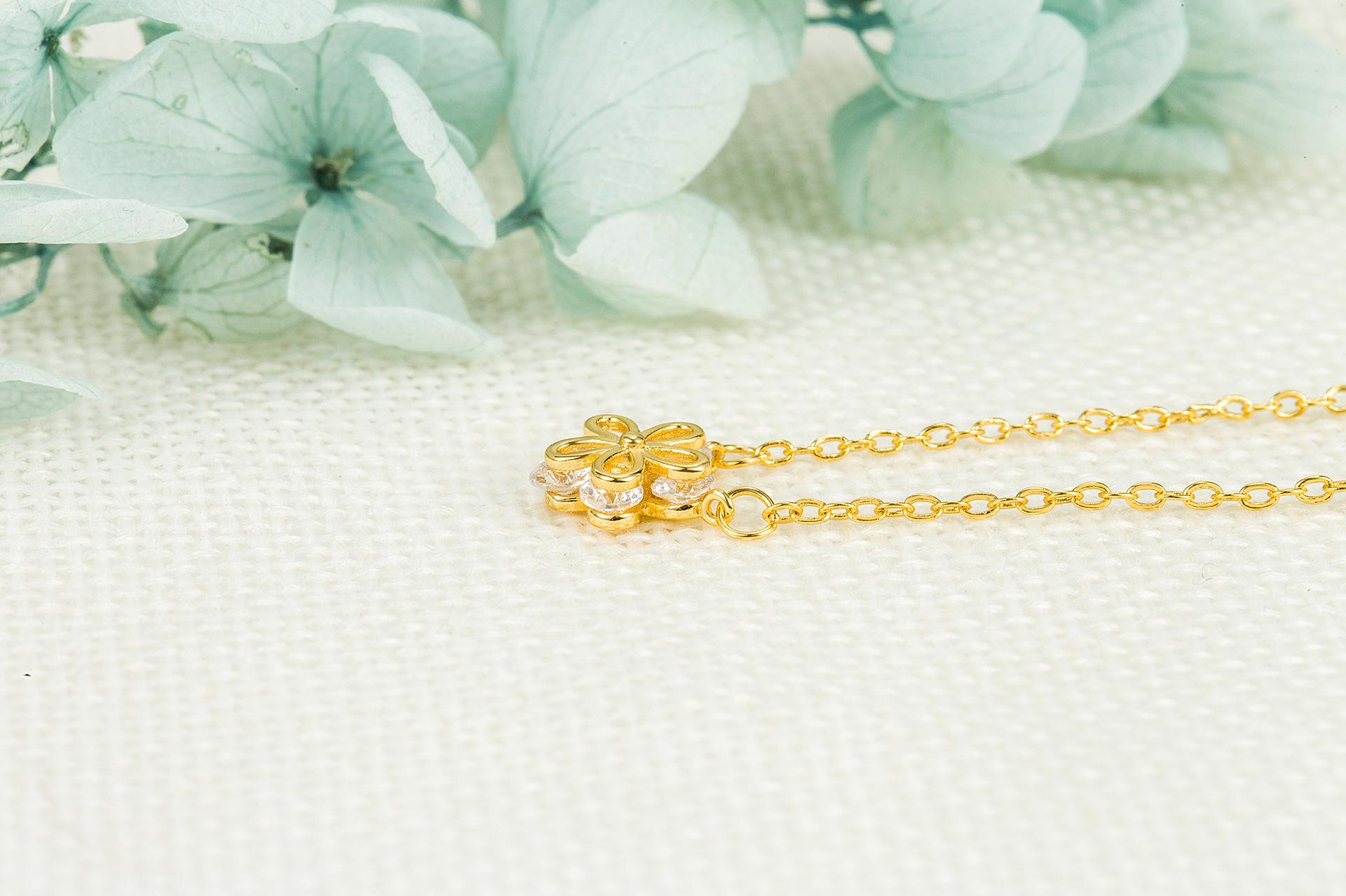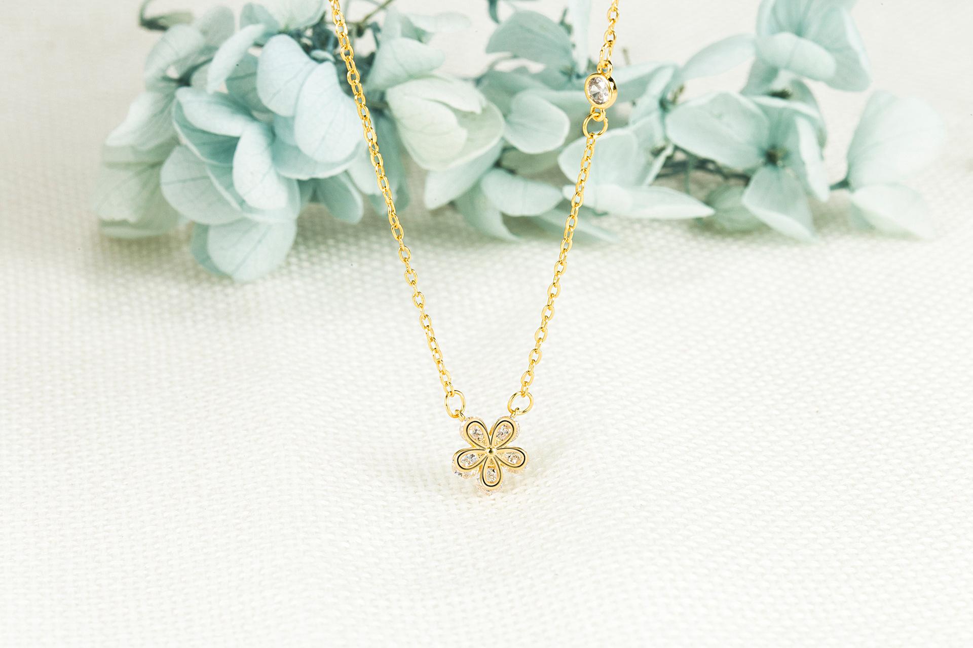 Nueva Cadena de Collar de Flores Pequeñas Dulces y Delicadas Diseño Nicho de Lujo Ligero Cadena para Suéter Regalo de Cumpleaños para Niñas