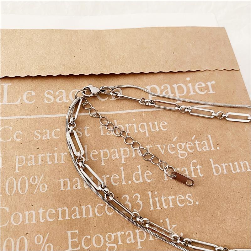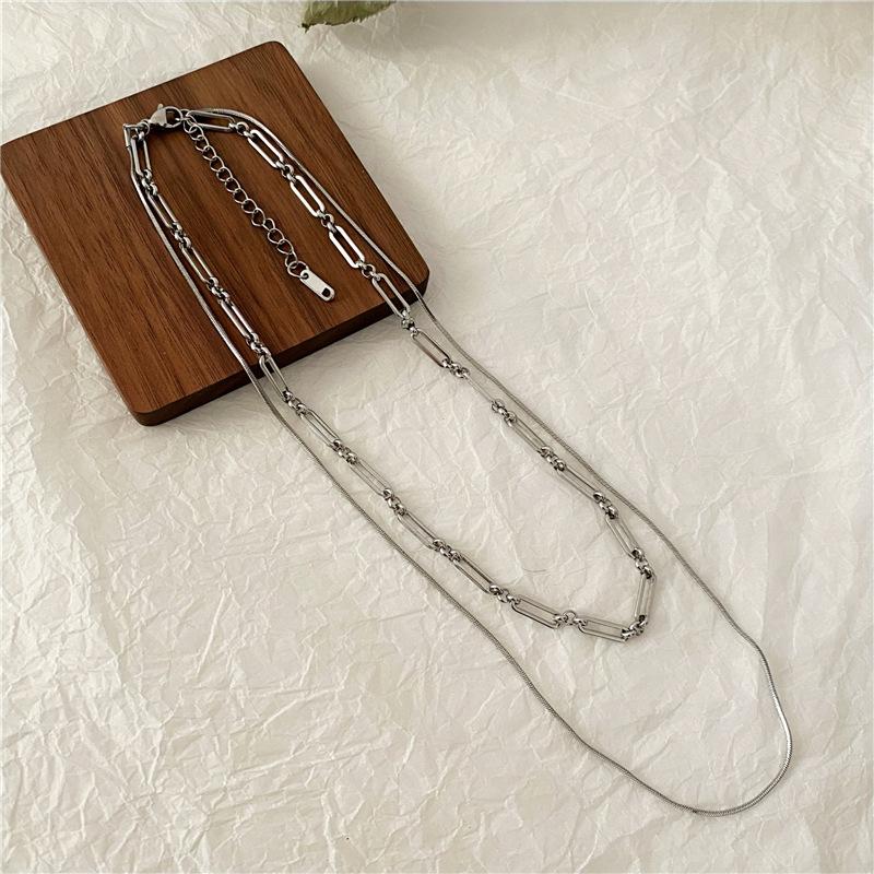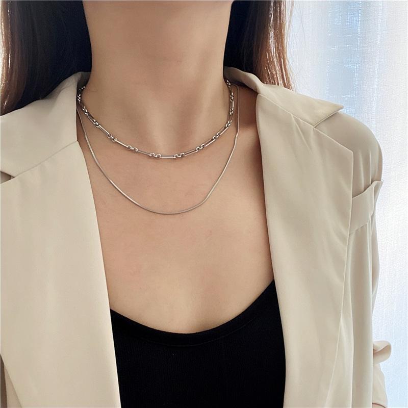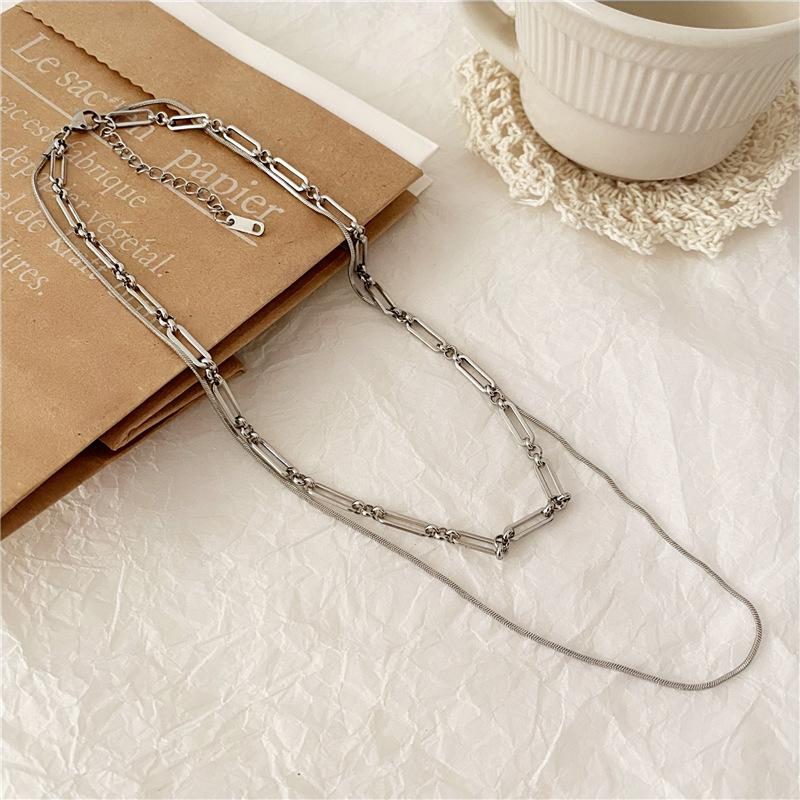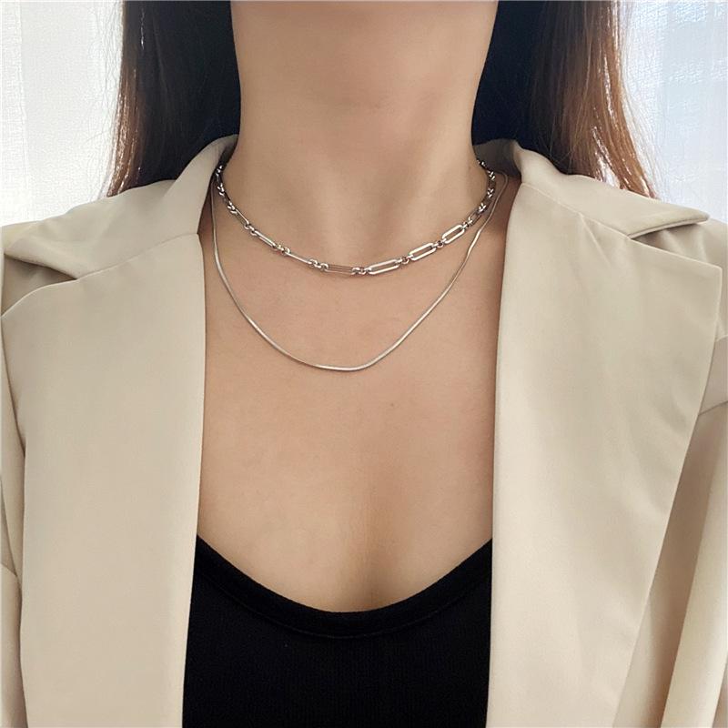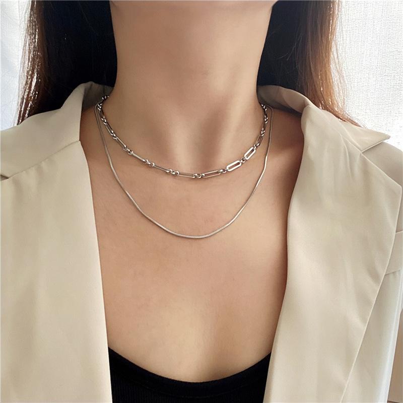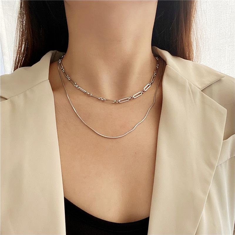 Collar de acero de titanio para mujer, cadena de hueso de serpiente apilada multicapa sin color, elegante estilo frío, accesorios de moda sencillos para celebridades de Internet.