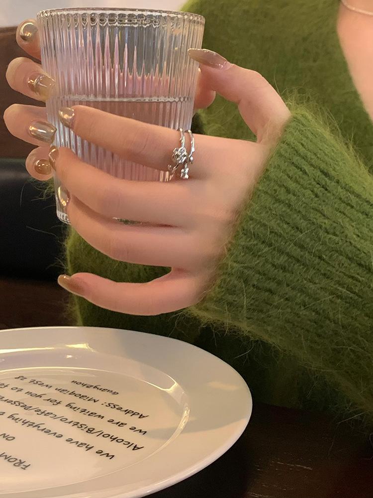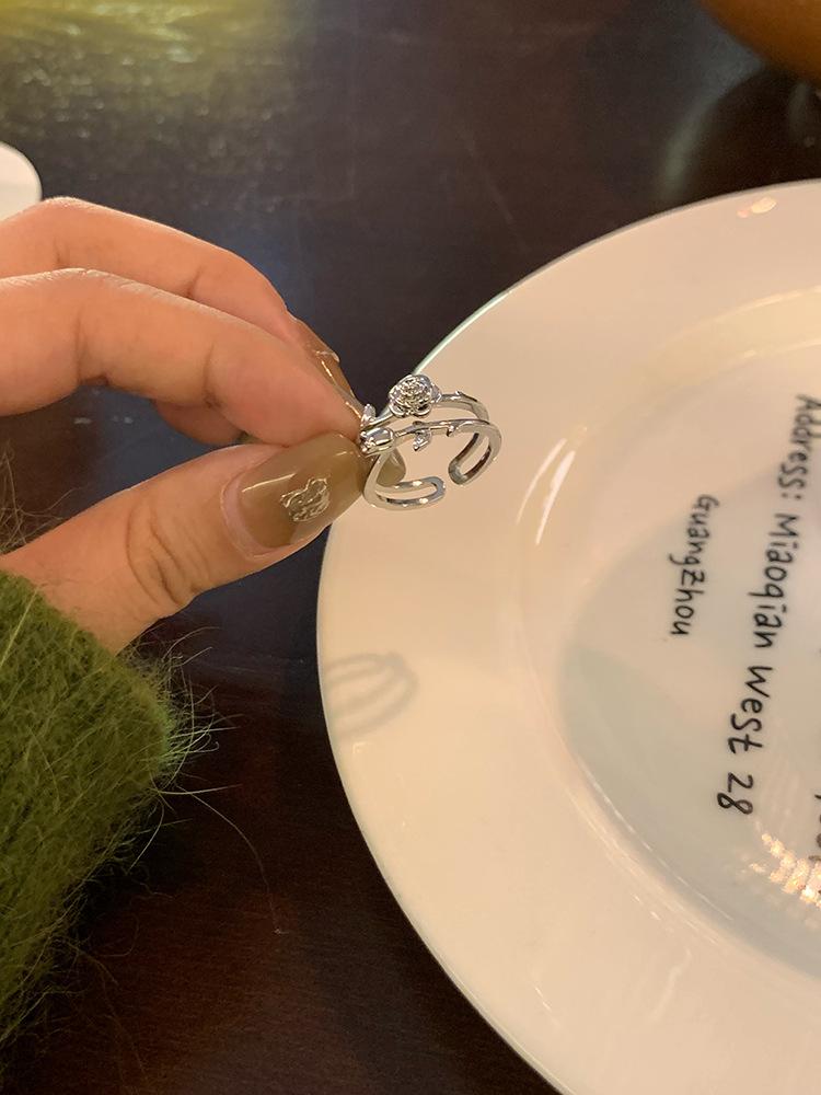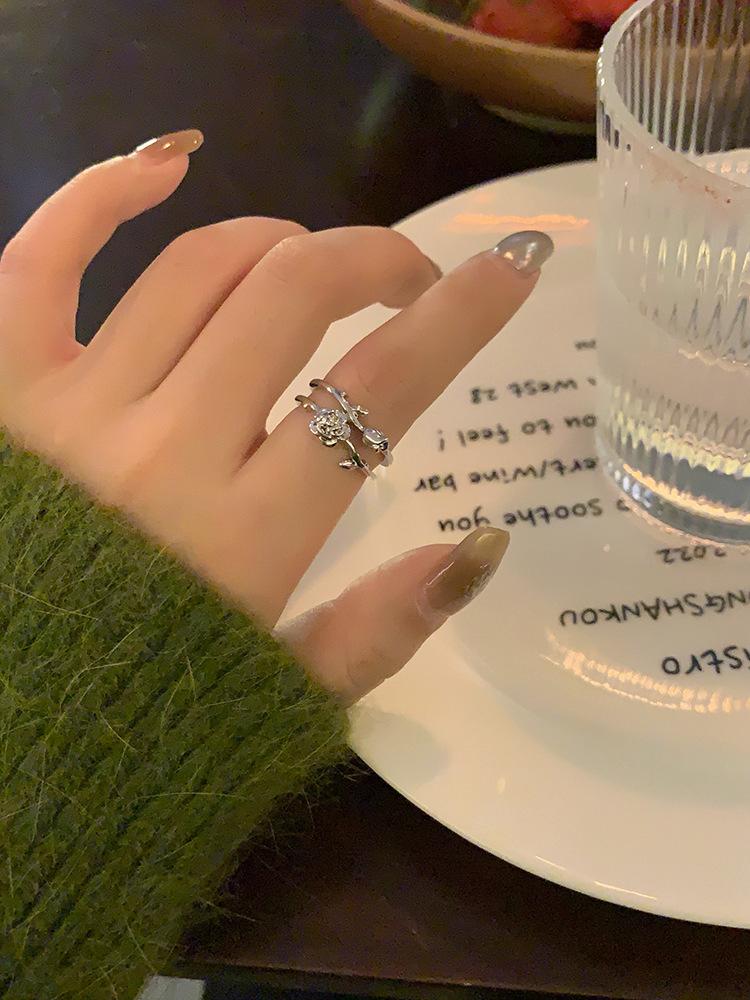 Anillo Abierto de Doble Capa con Flor Rosa Diseño Nicho Anillo de Dedo Índice Estilo Frío de Alta Gama Anillo de Moda Personalizado para Mujeres