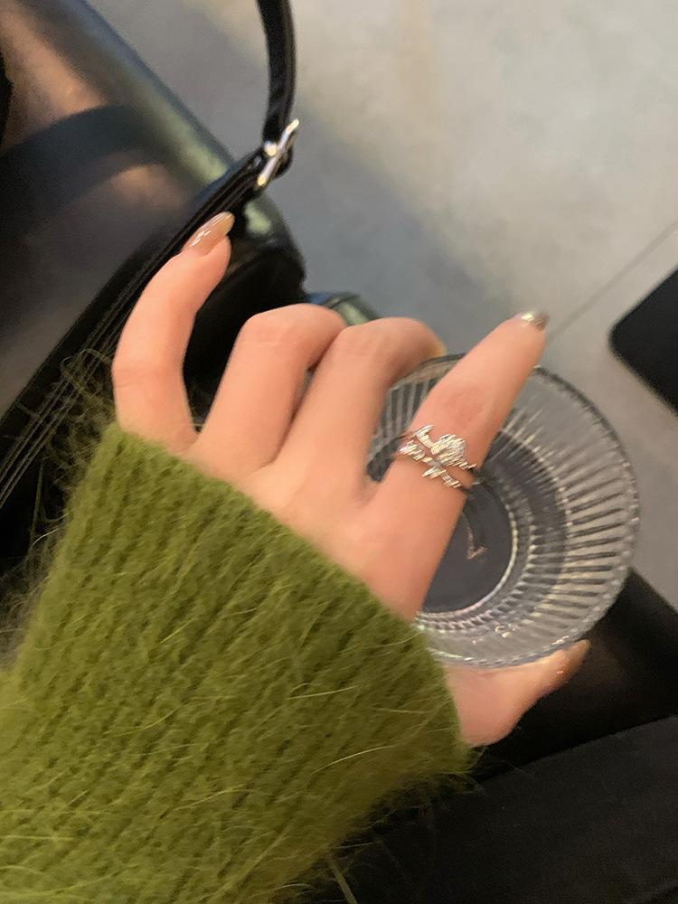 Anillo abierto de circonita súper brillante para mujer estilo frío línea irregular anillo para dedo índice ins celebridad de internet anillo versátil tendencia
