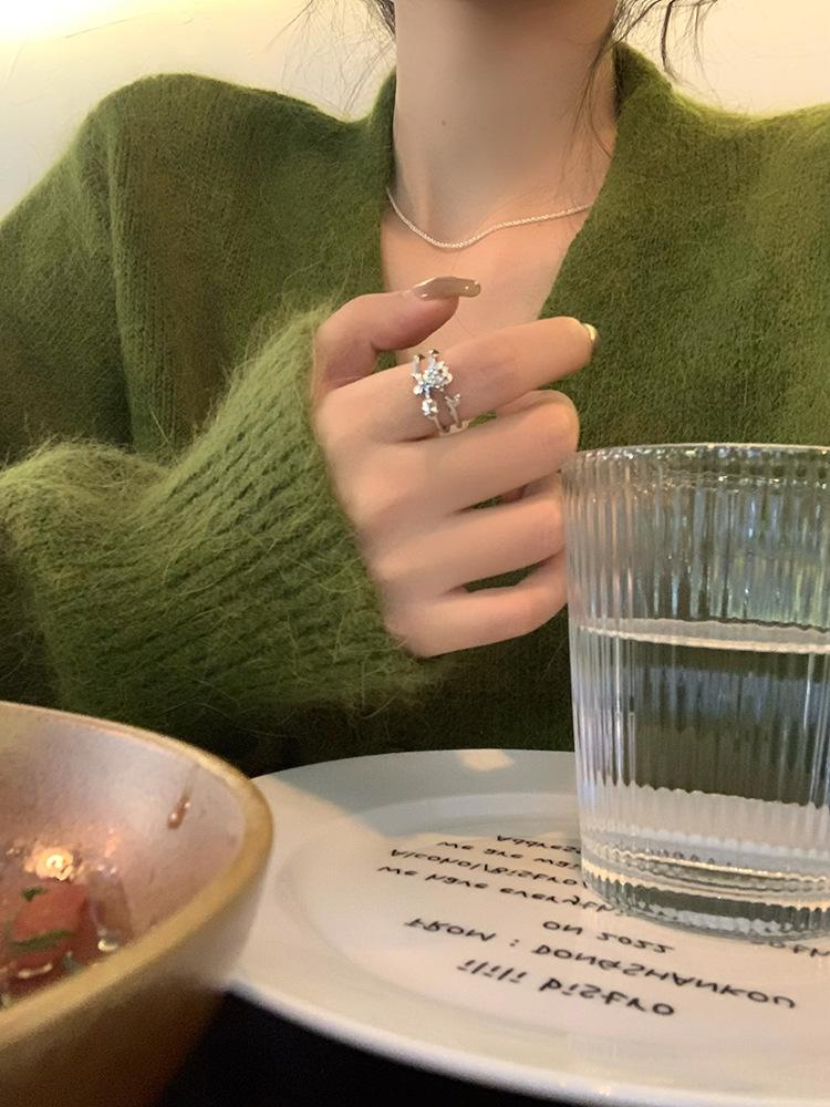 Anillo de amor de circonita súper flash de alta gama para mujer, estilo frío, temperamento versátil, anillo de chica hot, joyería de mano personalizada retro