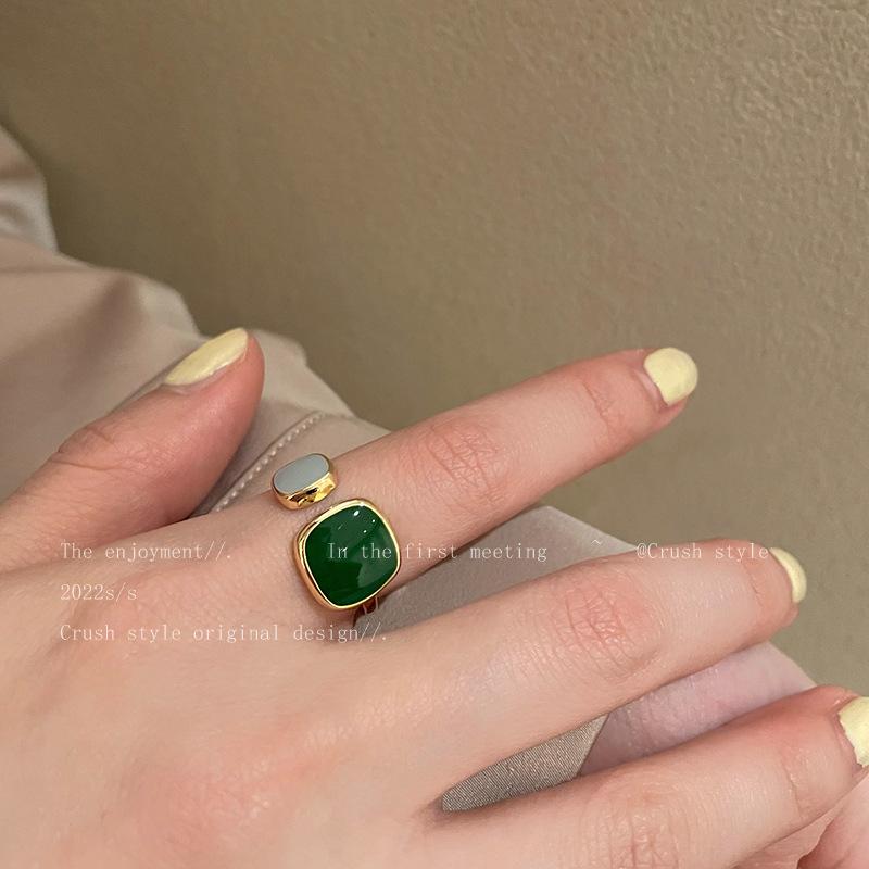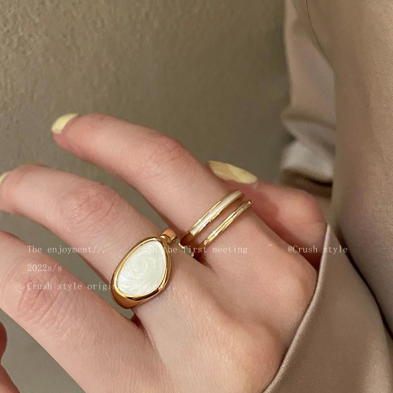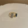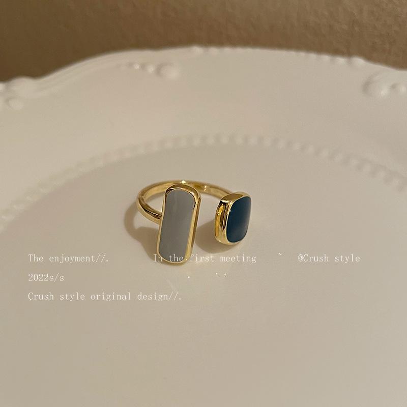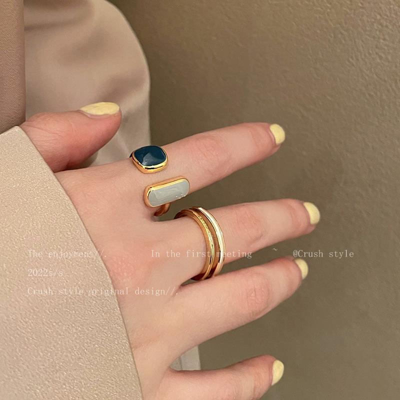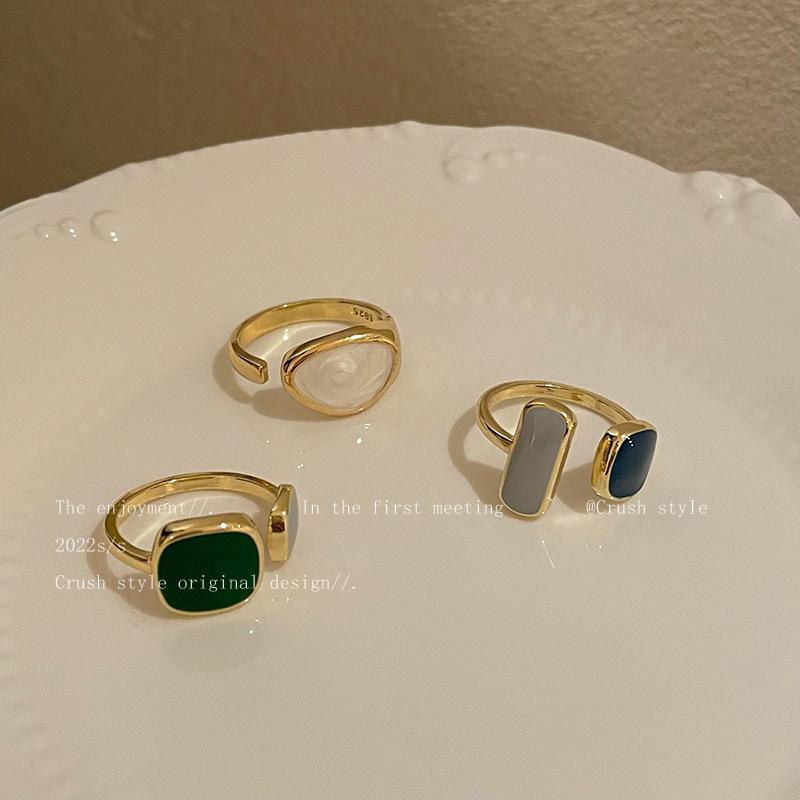 Anillo Simple de Plata S925 Estilo Coreano con Bloques de Color para Mujer Retro Elegante Elegante Geométrico Anillo Dividido Apilable Anillo de Dedo para Comida a la Moda