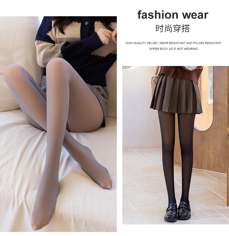 Medias gruesas, ligeras, para piernas, otoño e invierno, de una pieza, transparentes, de imitación de piel, de azafata, de forro polar gris, para mujer.