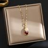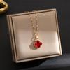 Collar de acero de titanio de moda en línea de estilo rojo para mujer, cadena de clavícula de alta calidad que no se decolora, joyería de trébol de lujo que combina con todo.