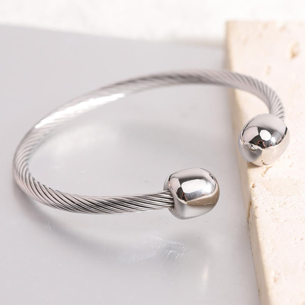 Pulsera Simple Europea y Americana en Forma de C de Acero de Titanio Retro Versátil Cable Moda Abierta Acero Inoxidable Pulsera para Mujer Venta al por Mayor